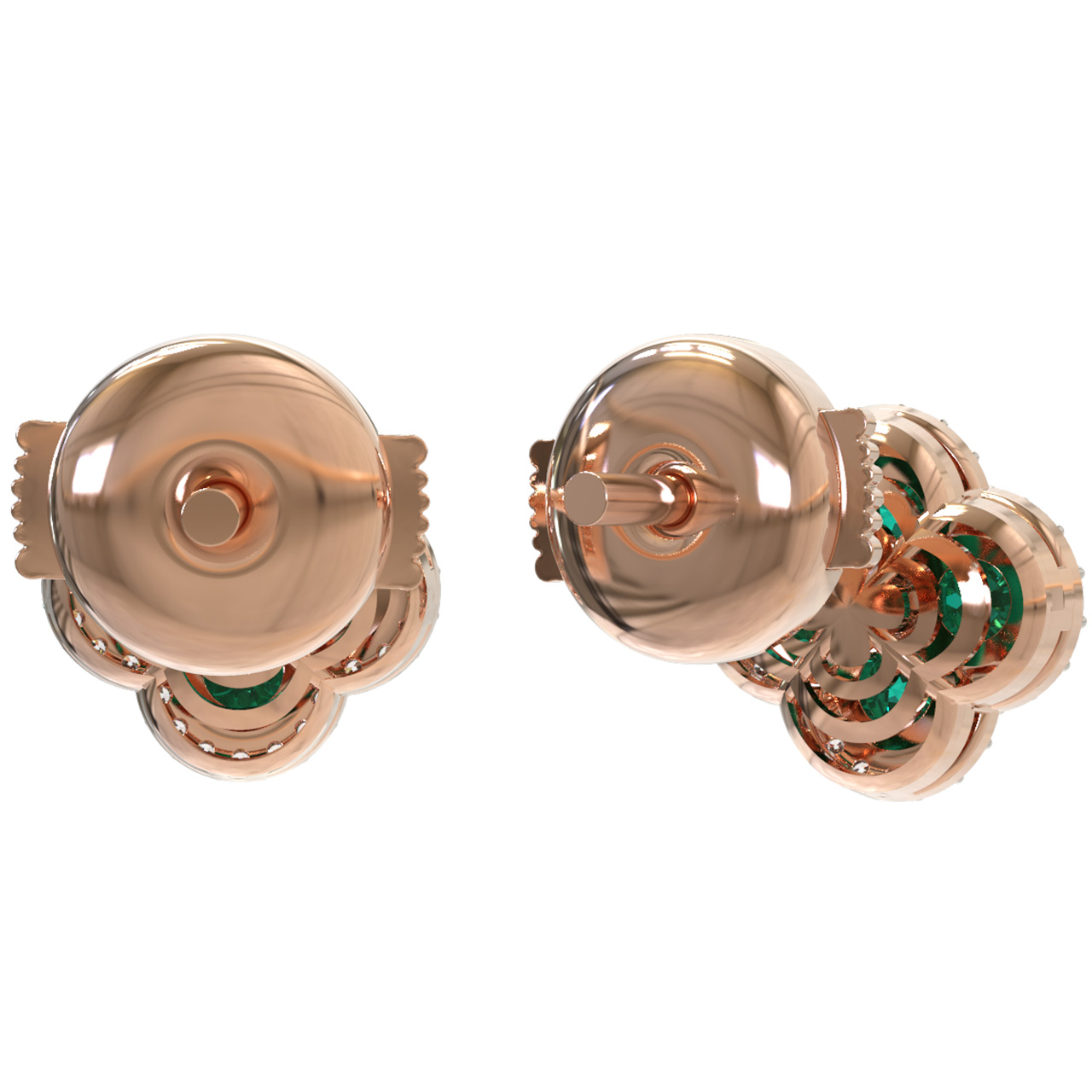 Роскошные серьги из красного золота 585 пробы из коллекции De Luxe Бриллианты — Fiore станут воплощением изысканности в вашем образе. Дизайн украшения, выполненный в форме цветка, притягивает взгляд своей гармонией и вниманием к деталям. Центром композиции являются изумруды насыщенного зелёного цвета, которые создают великолепный контраст с тёплым оттенком красного золота. Огранка вставок круглой формы подчеркивает глубину каждого камня, придавая изделию особую выразительность.