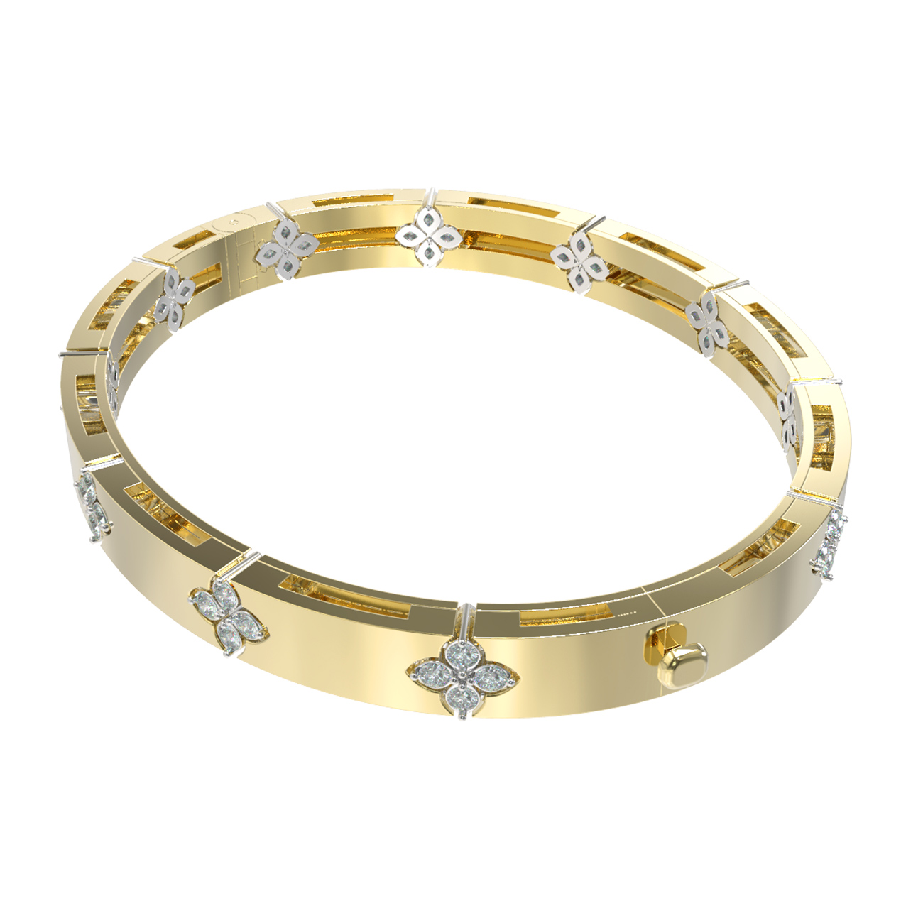 Роскошный характер браслета подчеркивают 352 бриллианта круглой огранки. Белый цвет вставок эффектно контрастирует с лимонным золотом, создавая гармоничную композицию. Это украшение создано для тех, кто ценит ювелирное искусство и внимание к деталям. Универсальный дизайн позволяет носить изделие как женщинам, так и мужчинам, подчеркивая индивидуальный стиль владельца.