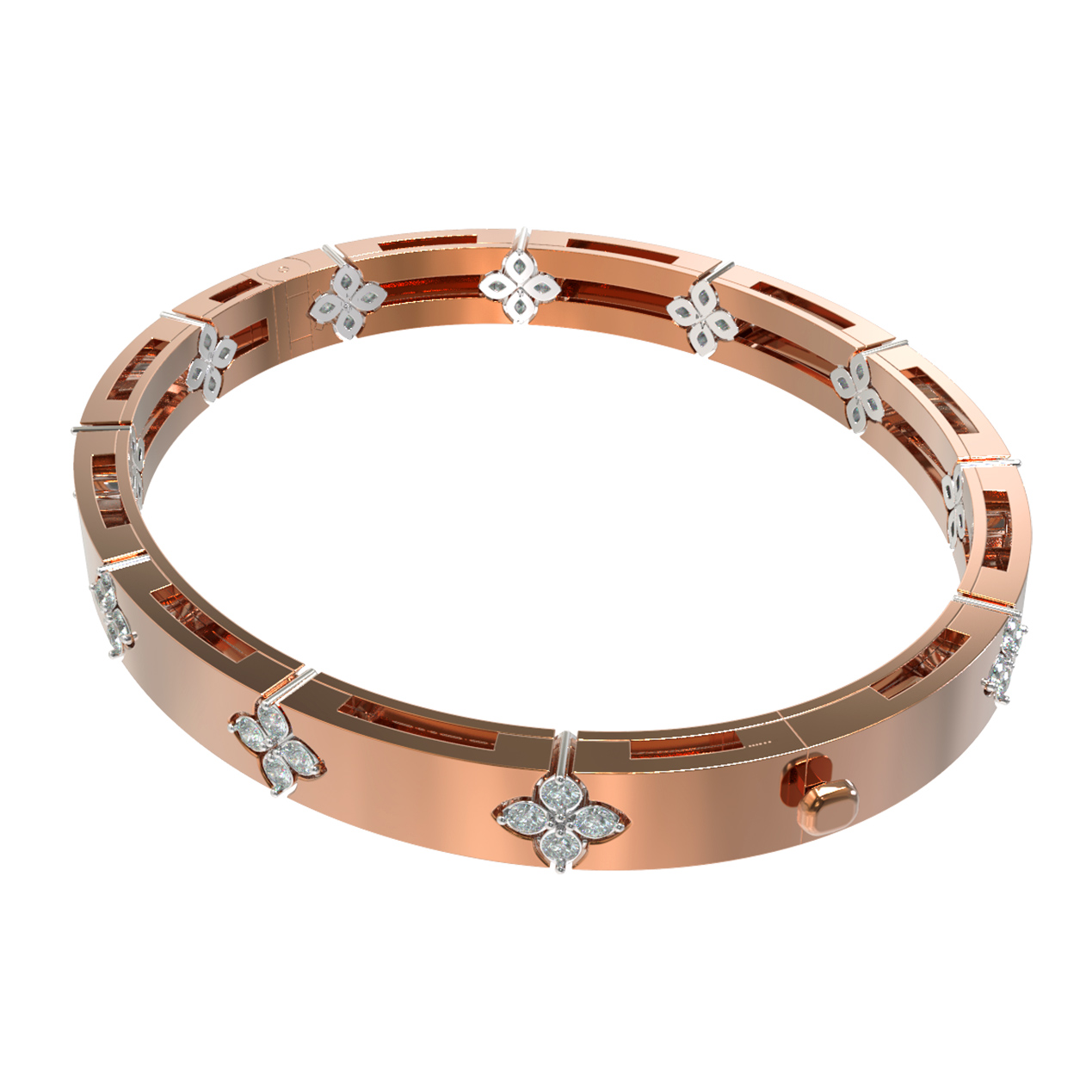 Центральным элементом композиции выступают 352 бриллианта круглой формы, которые сияют холодным белым светом, формируя изысканные цветочные мотивы. Благодаря искусной огранке каждый камень максимально раскрывает свою природную красоту. Этот золотой браслет универсален и подходит как для женщин, так и для мужчин, предпочитающих статусные аксессуары. Изделие гармонично сочетается с другими украшениями и может стать частью стильного комплекта.