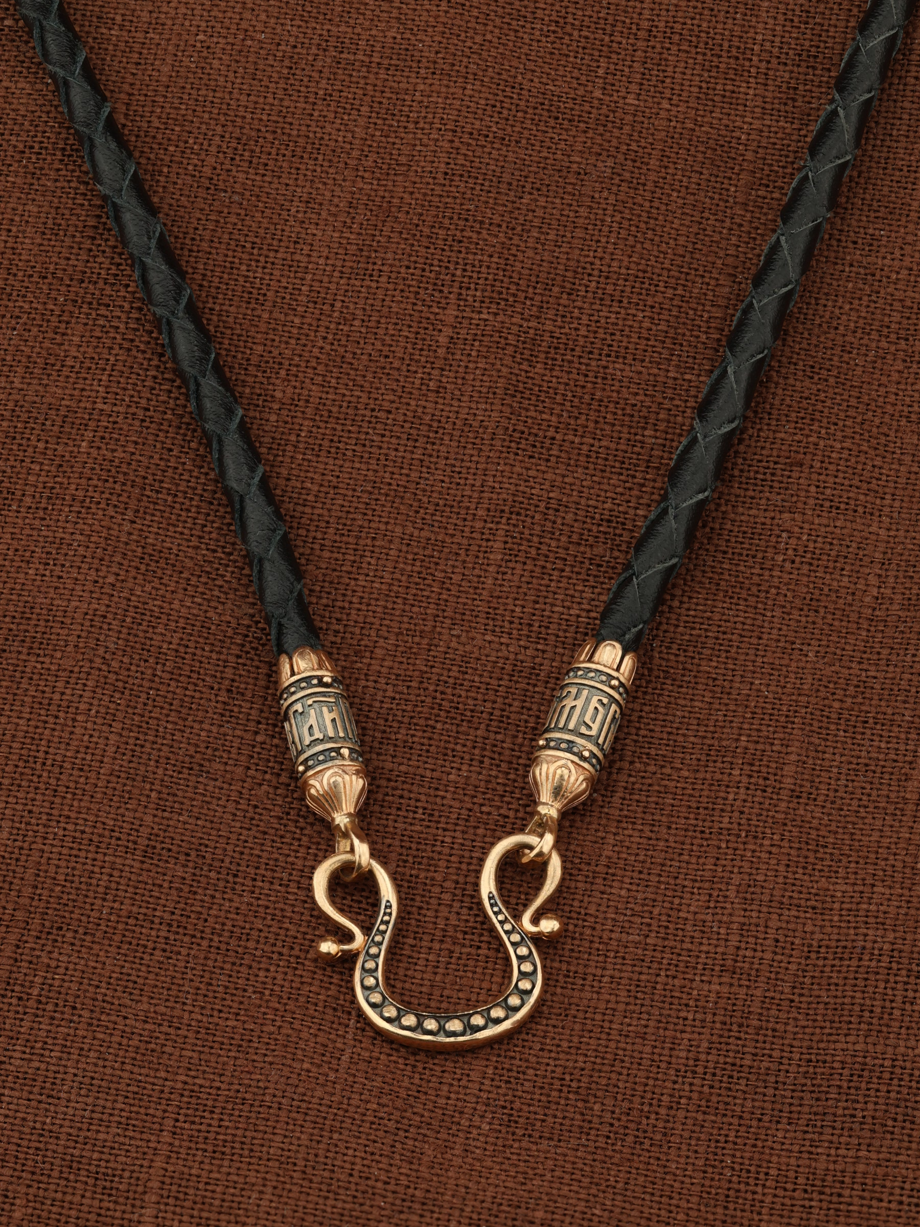 Гайтан из золота c кожаным шнурком