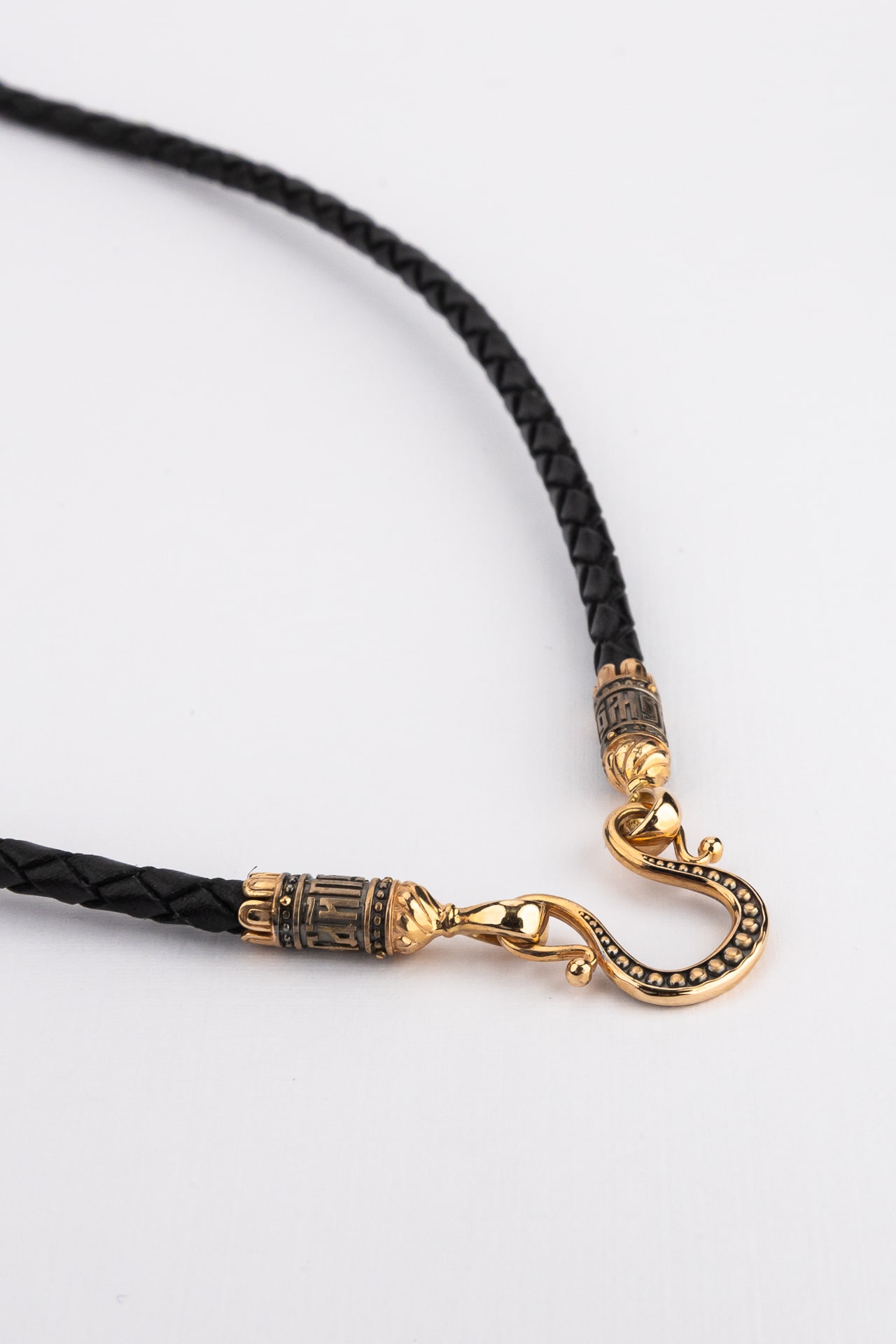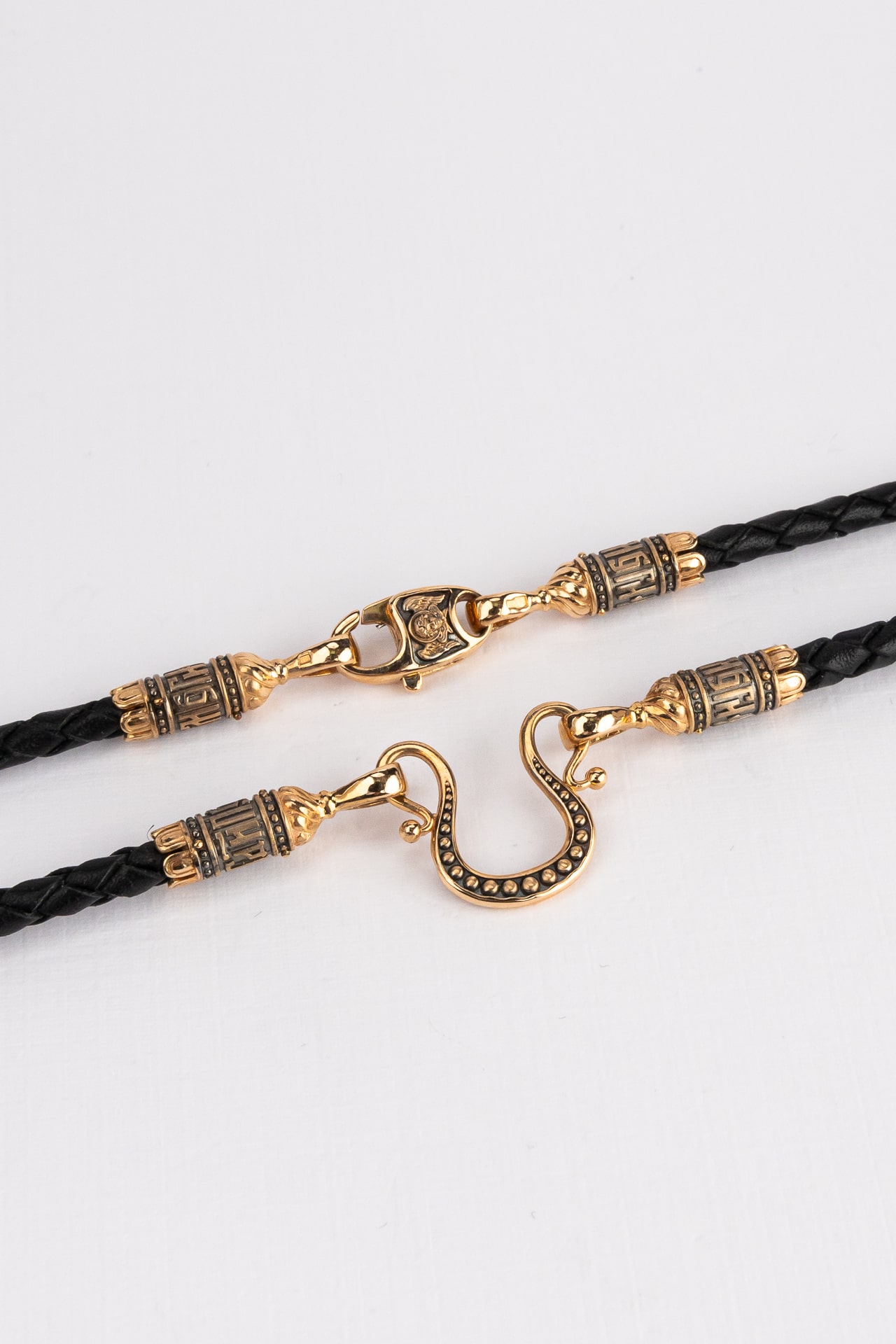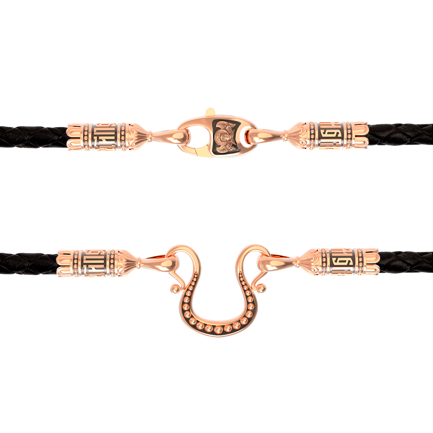 Цепь-шнурок кожа из красного золота 585 пробы c кожаным шнурком