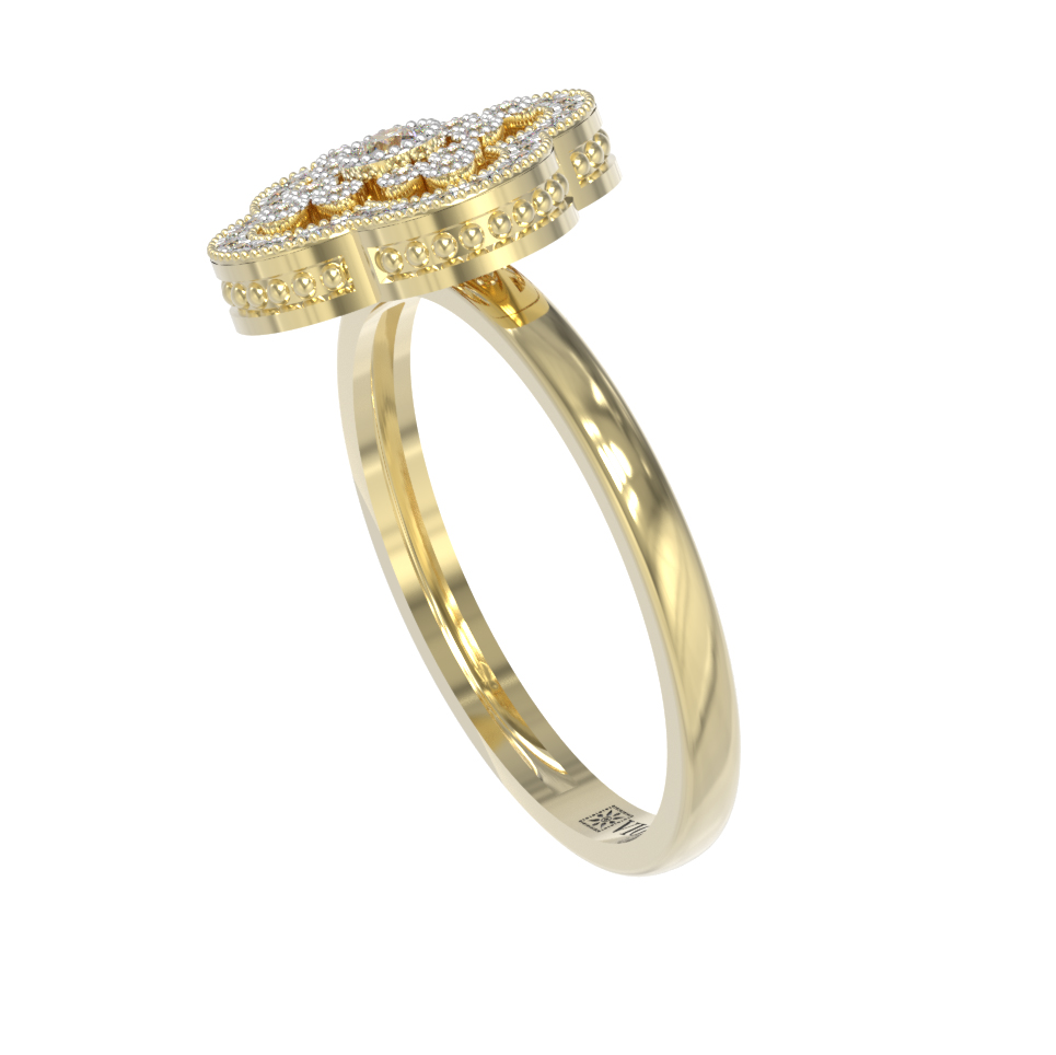 Кольцо из лимонного золота с бриллиантами из коллекции De Luxe Бриллианты — Fiore станет изысканным акцентом вашего образа. Это ювелирное украшение выполнено из благородного лимонного золота 585 пробы, которое подчеркивает теплоту и глубину драгоценного металла. Центральным элементом дизайна является декоративная часть в форме цветка, инкрустированная 45 бриллиантами круглой огранки. Белый цвет вставок эффектно контрастирует с ярким оттенком металла, создавая гармоничное и притягательное сочетание.