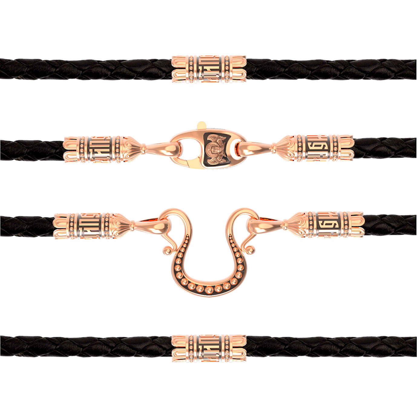 Цепь-шнурок кожа из красного золота 585 пробы c кожаным шнурком