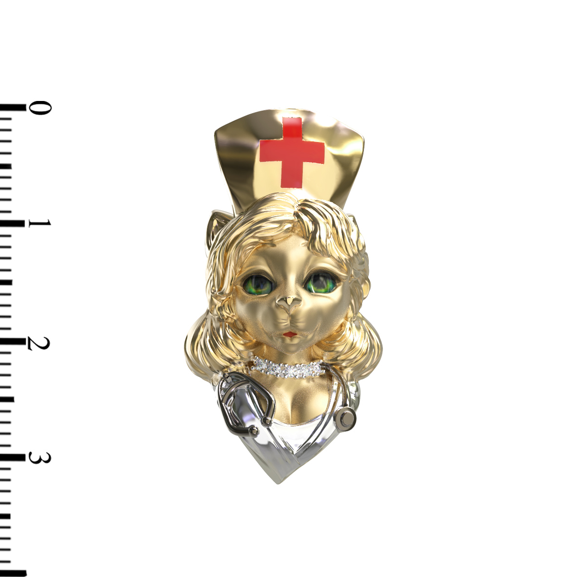 Подвеска из лимонного золота 585 пробы c эмалью, бриллиантами и рубином