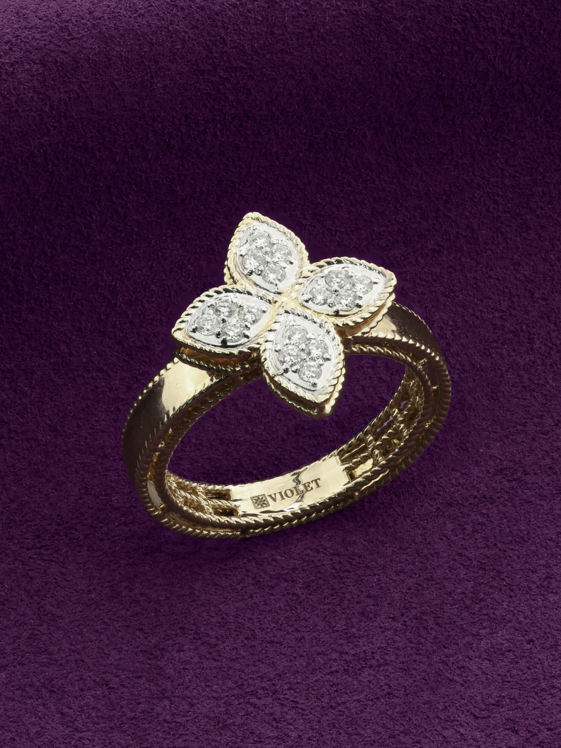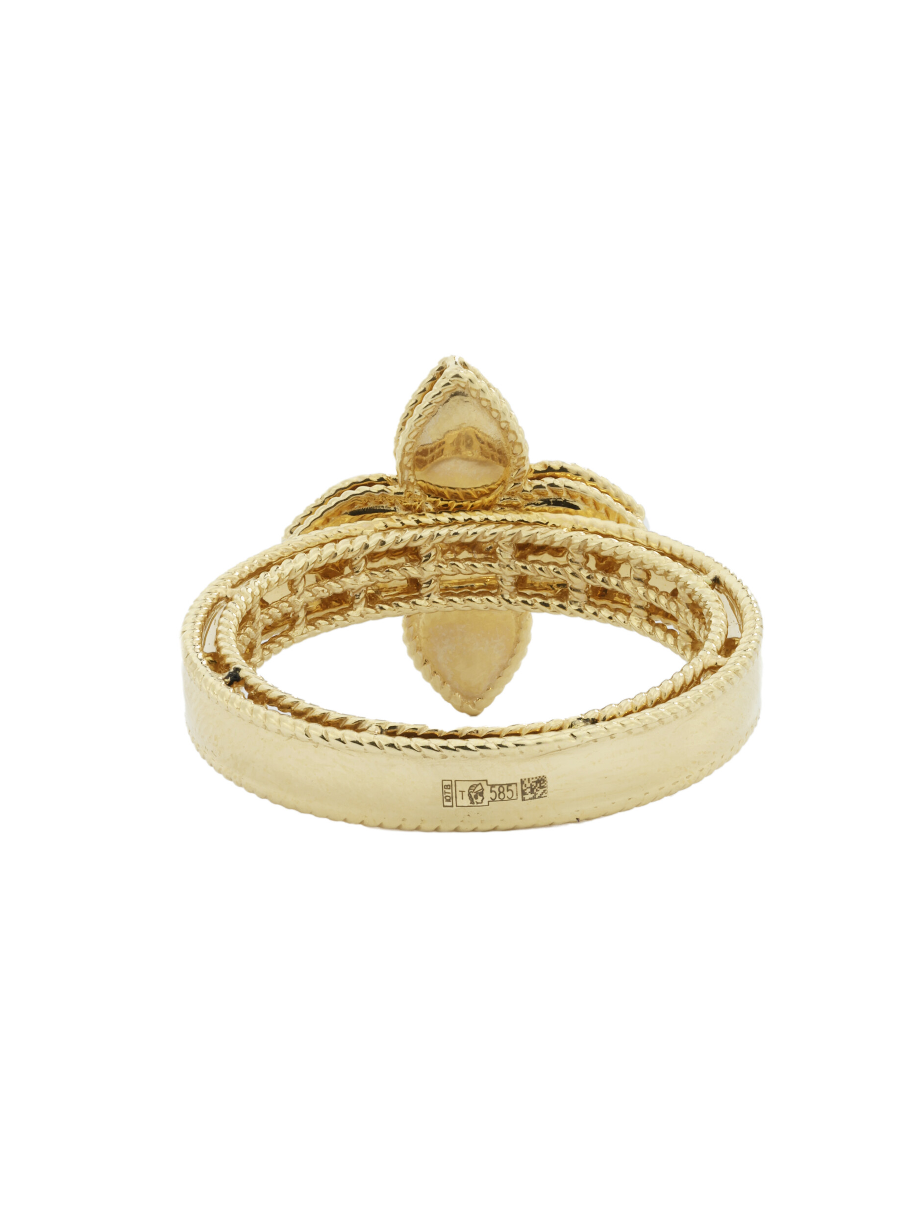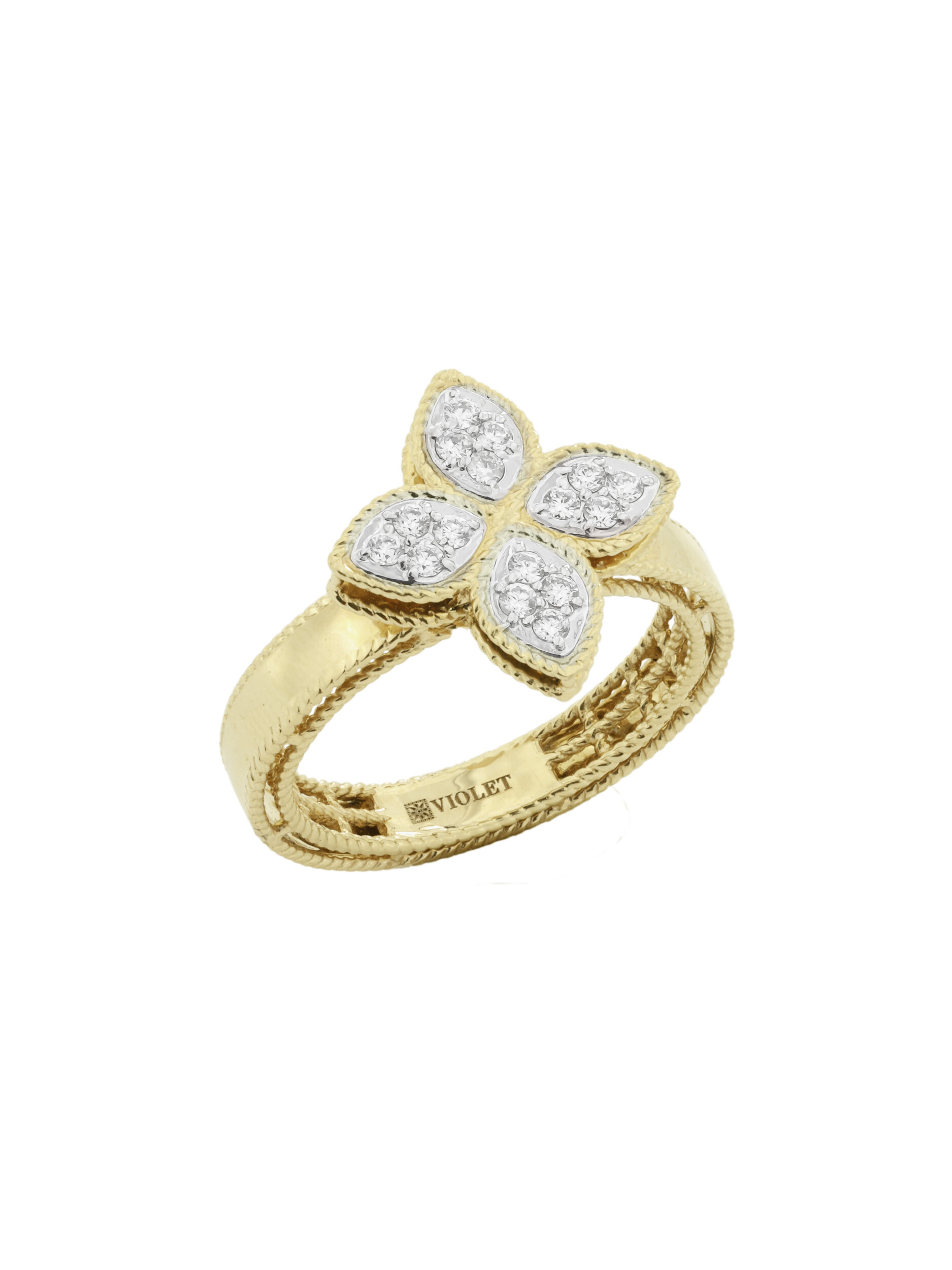 Изысканное кольцо из лимонного золота 585 пробы — это воплощение утонченности и высокого ювелирного искусства. Центральным элементом украшения выступает изящный дизайн в форме клевера, который придает изделию особое очарование и символический смысл. Благородный блеск лимонного золота гармонично дополнен инкрустацией из 16 сверкающих бриллиантов круглой формы. Белый цвет вставок эффектно контрастирует с теплым оттенком драгоценного металла, создавая выразительную и статутуную композицию.