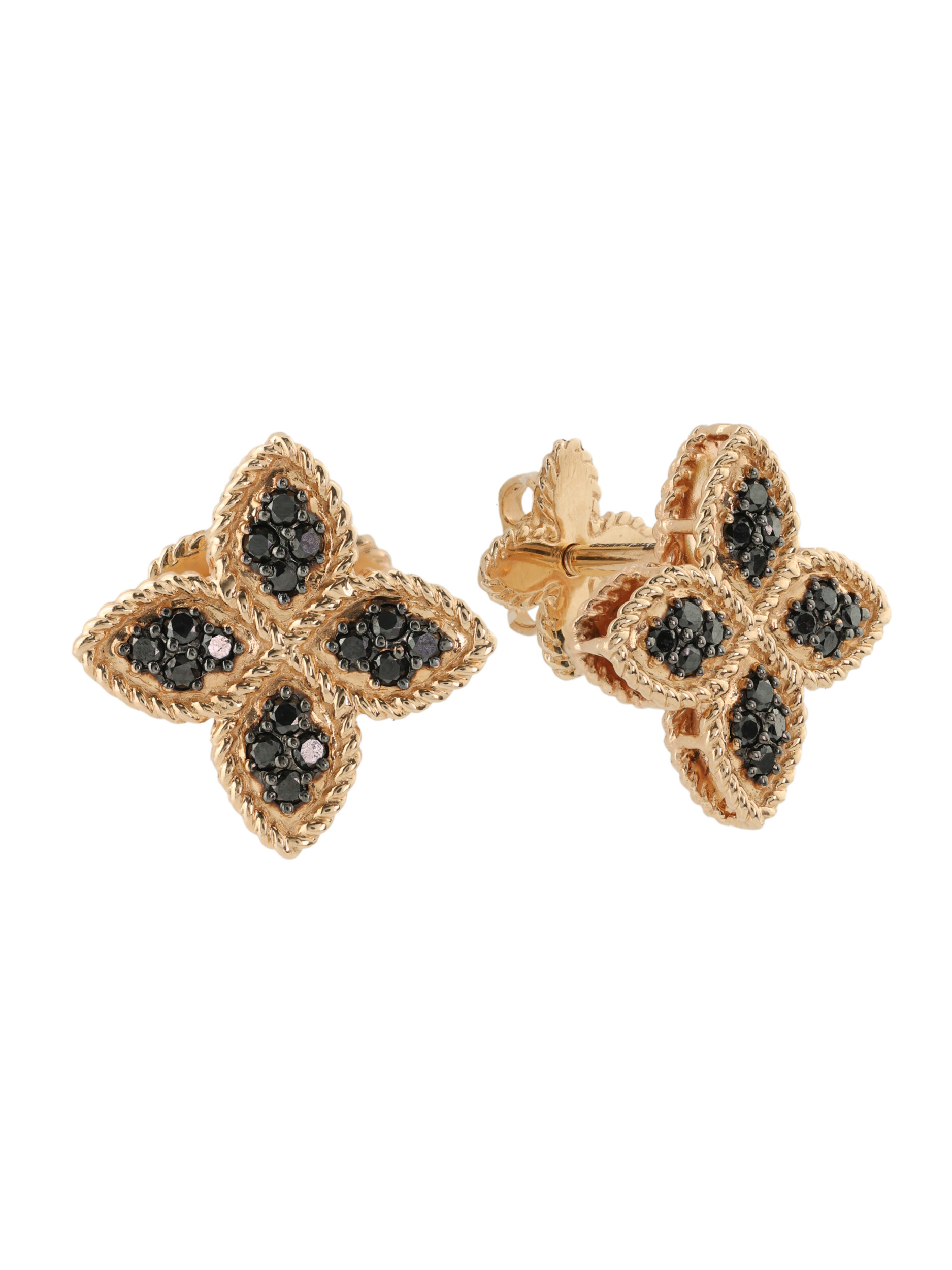 В каждой серьге расположено множество драгоценных камней: всего в паре используется 32 бриллианта. Глубокий черный цвет вставок круглой формы создает выразительный акцент на фоне красного золота. Такое сочетание делает украшение заметным и статусным, подчеркивая безупречный вкус владельца. Эти серьги созданы для женщин и мужчин, которые ценят лаконичную роскошь и внимание к деталям.