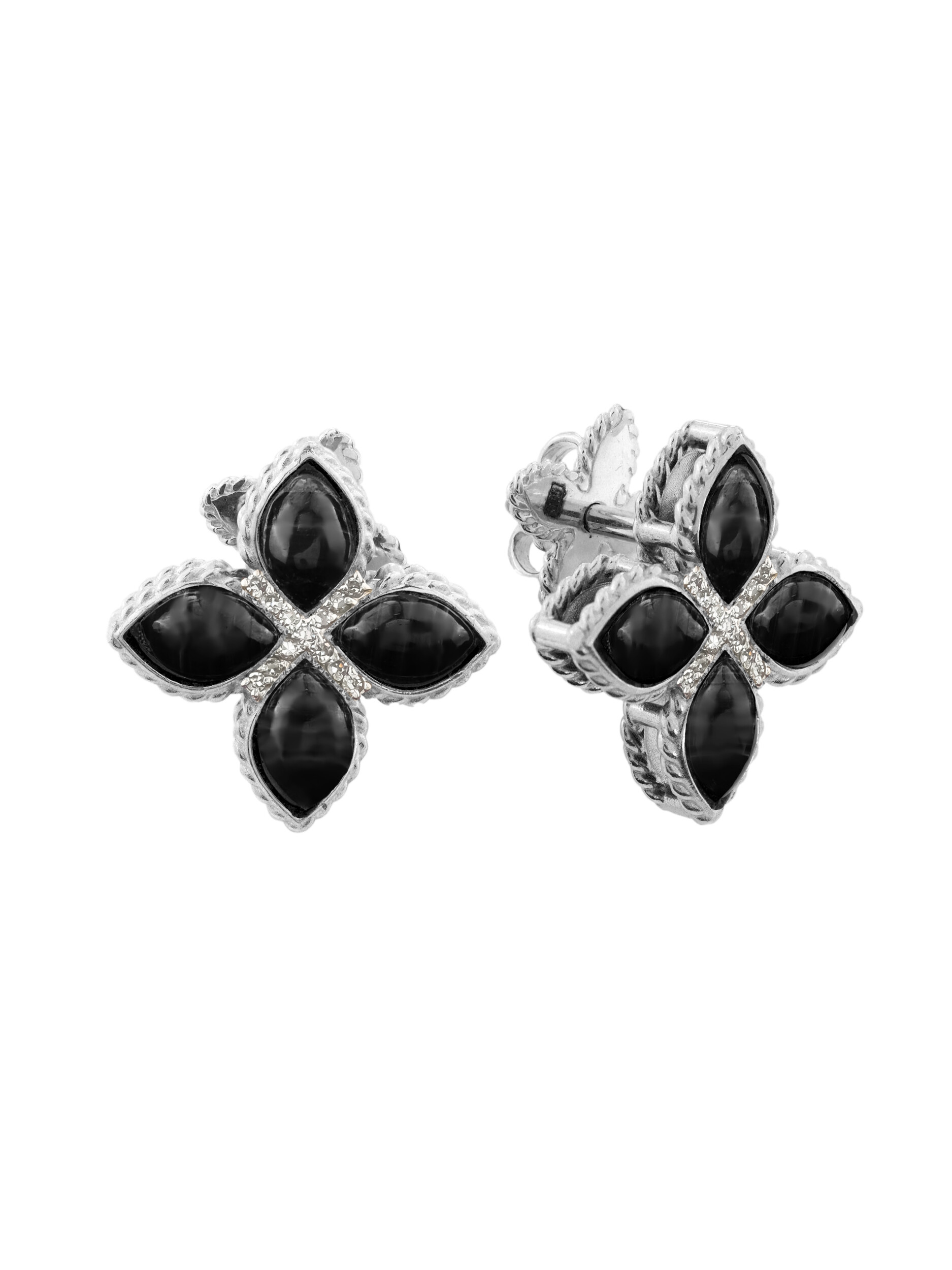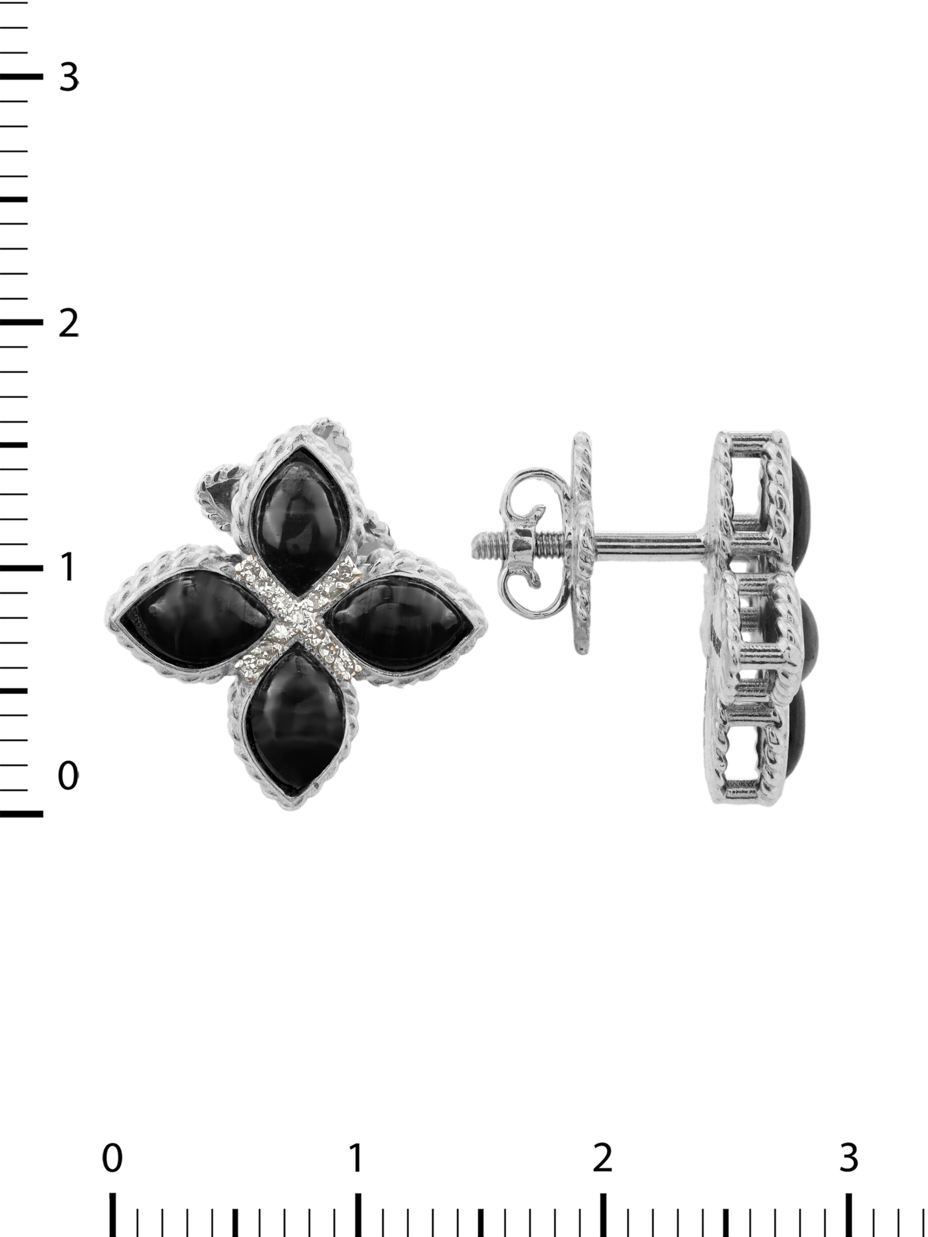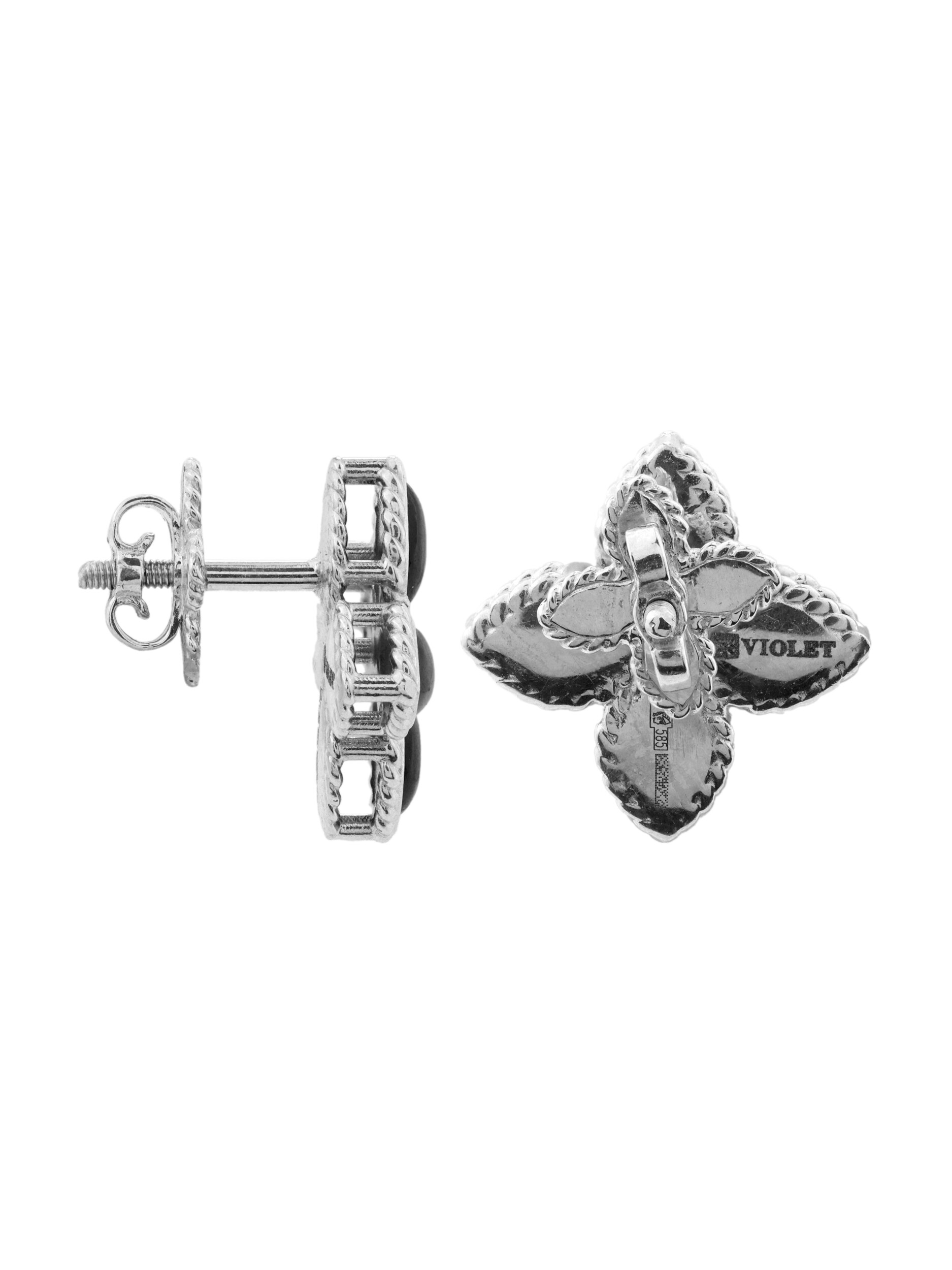 Всего в изделии предусмотрено 26 вставок, каждая из которых подчеркивает безупречное мастерство исполнения. Оникс огранен в форме лепестка, что добавляет мягкости строгой геометрии цветка. Белое золото идеально обрамляет вставки, создавая эффектное сияние. Эти серьги подойдут как для женщин, так и для мужчин, предпочитающих статусные аксессуары с глубоким смыслом. Лаконичный, но эффектный дизайн позволяет сочетать их с другими украшениями, создавая гармоничные комплекты для торжественных выходов или особых случаев.