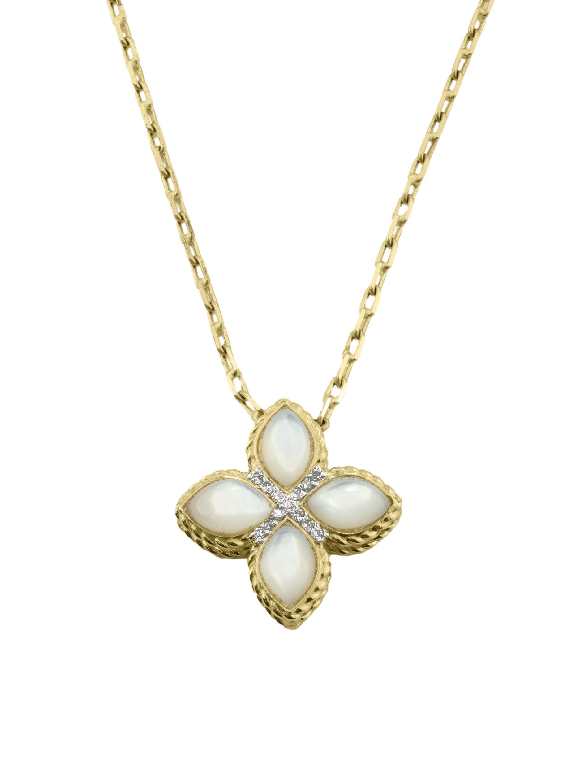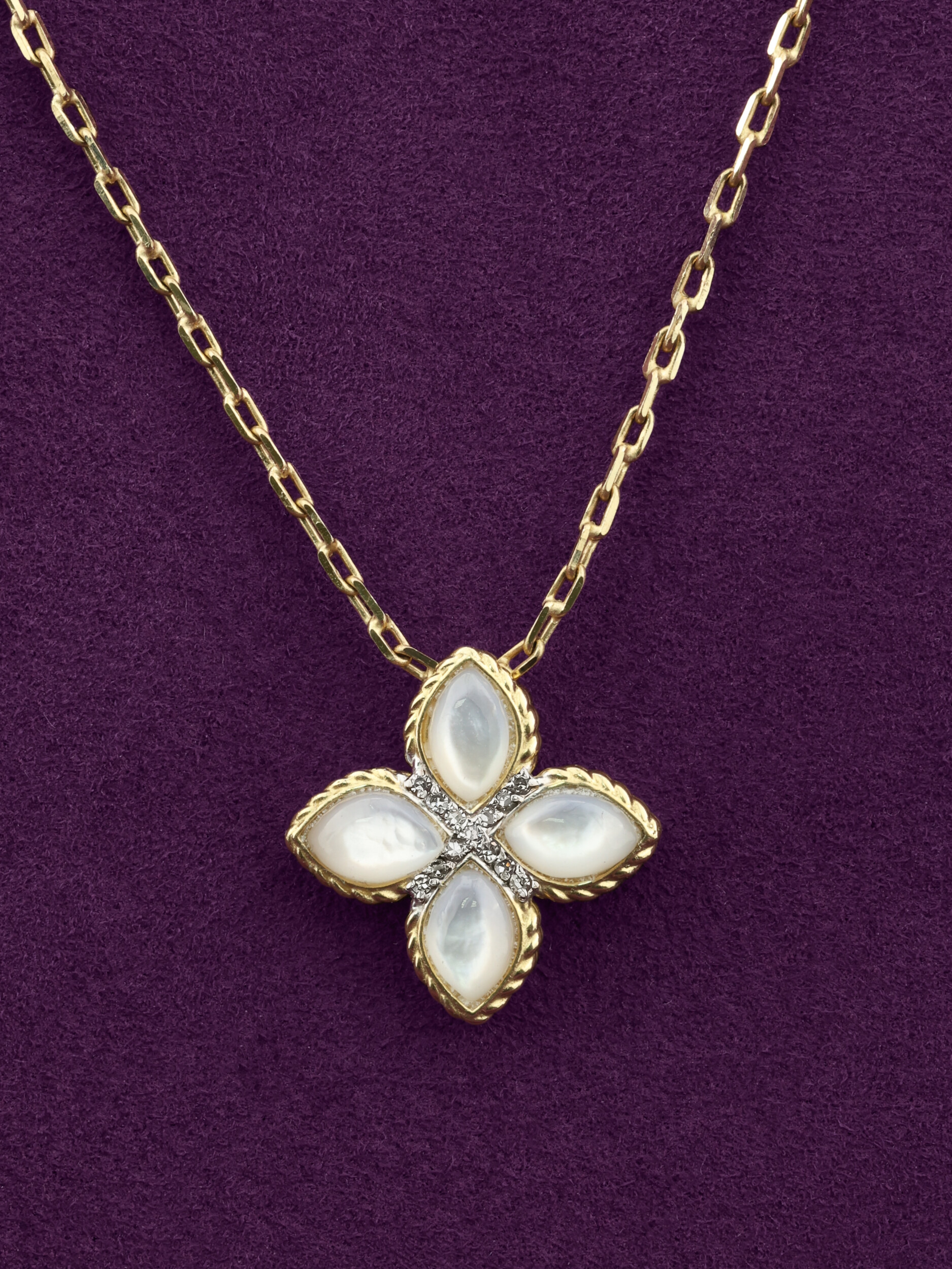 Колье из лимонного золота 585 пробы c бриллиантами и перламутром