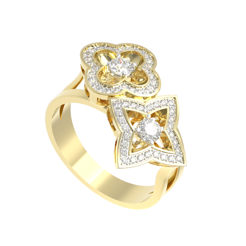 Кольцо из лимонного золота 585 пробы c бриллиантами