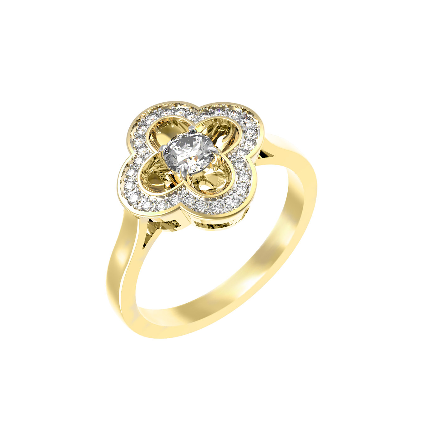 Кольцо из лимонного золота 585 пробы c бриллиантами