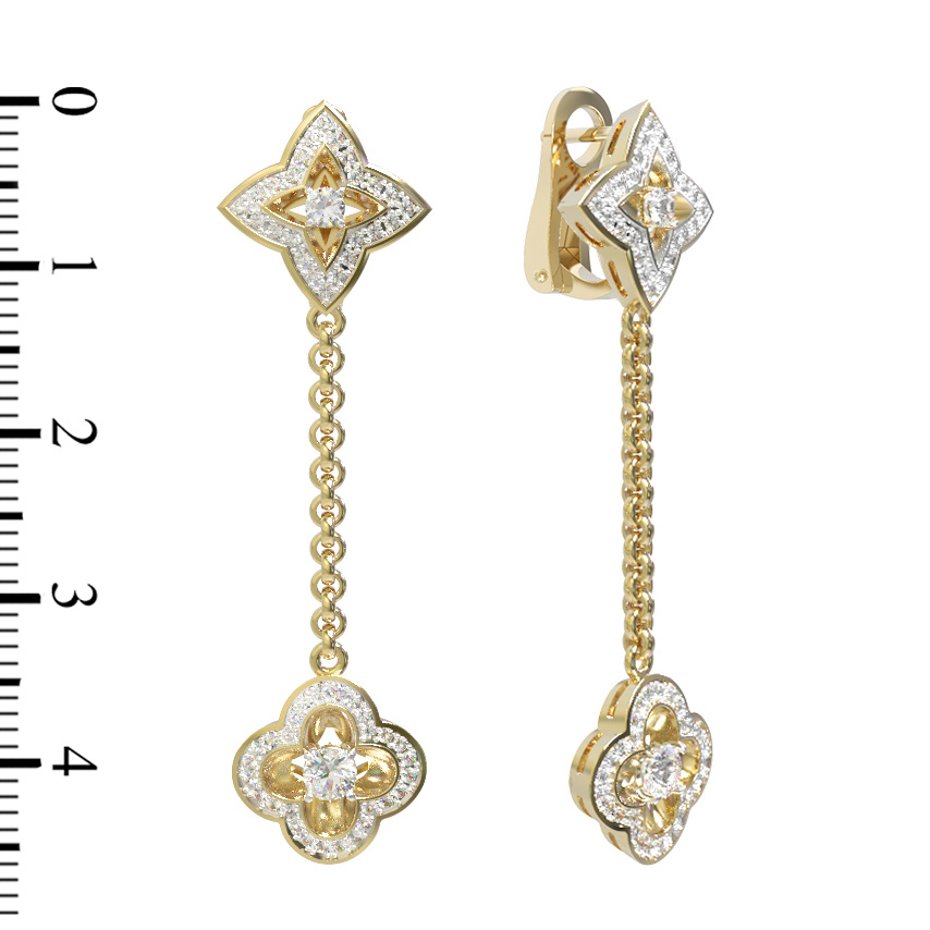 Серьги из лимонного золота 585 пробы c бриллиантами