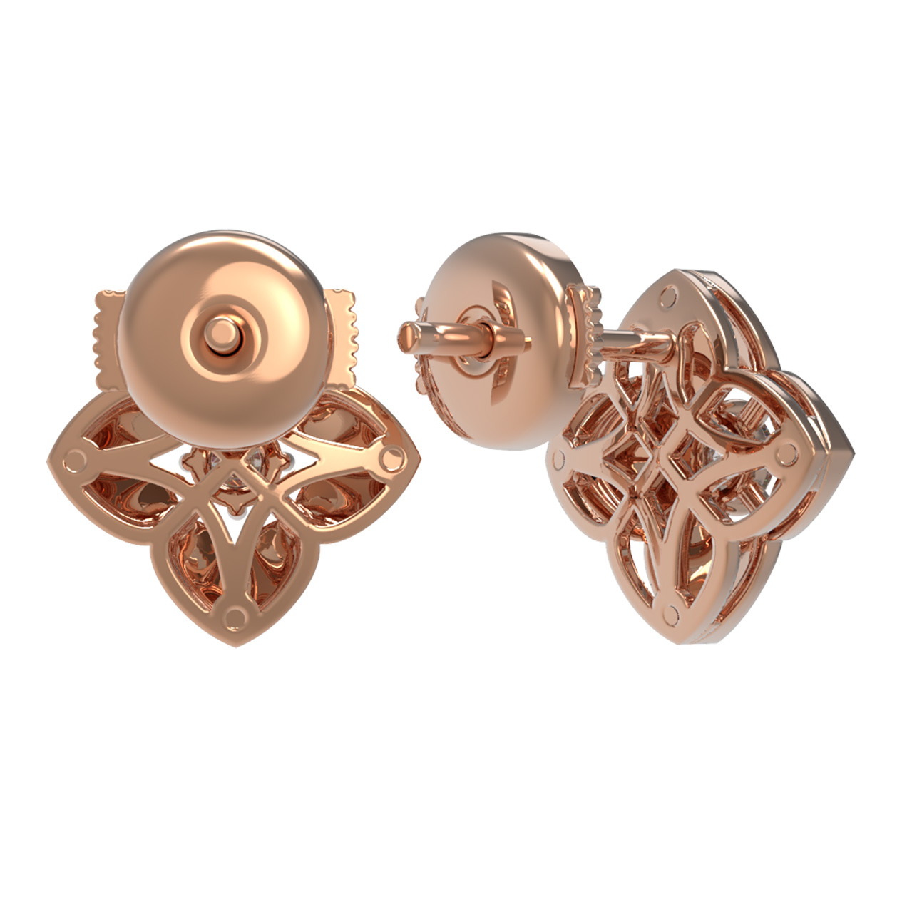 В центре каждого цветка расположен драгоценный бриллиант круглой огранки. Белый цвет вставок создает изысканный контраст с красным золотом, заставляя камень играть яркими бликами при каждом движении. В паре используется 2 бриллианта, которые добавляют изделию роскошный блеск и статусность. Эти серьги — пример того, как классические ювелирные традиции сочетаются с актуальными формами.
