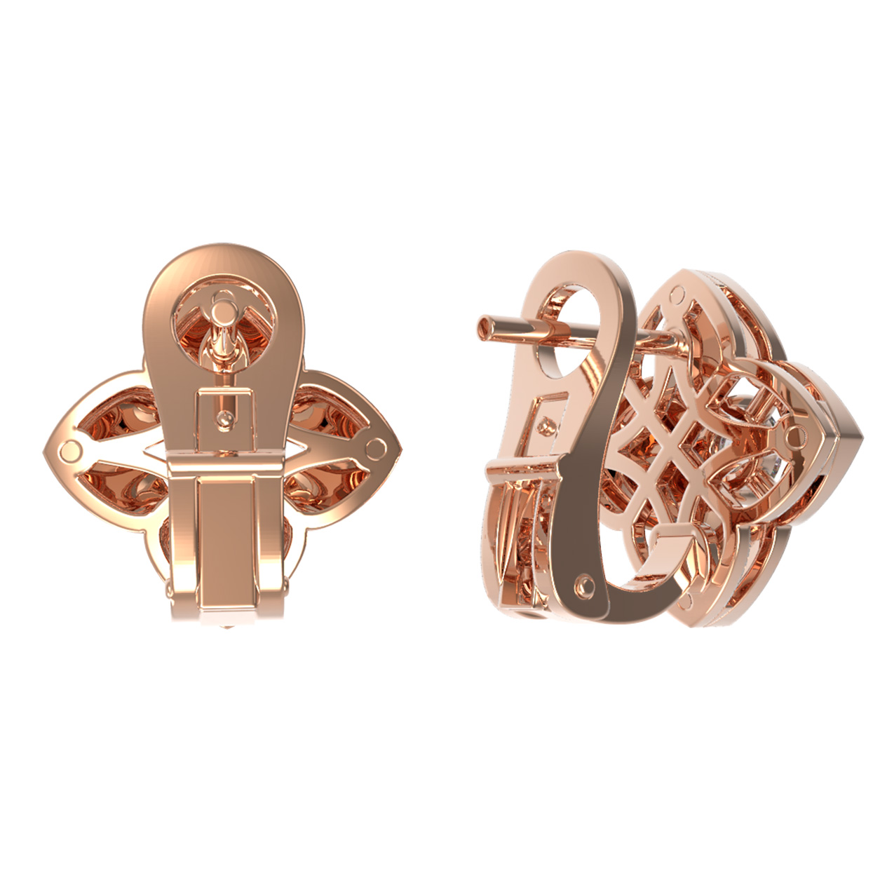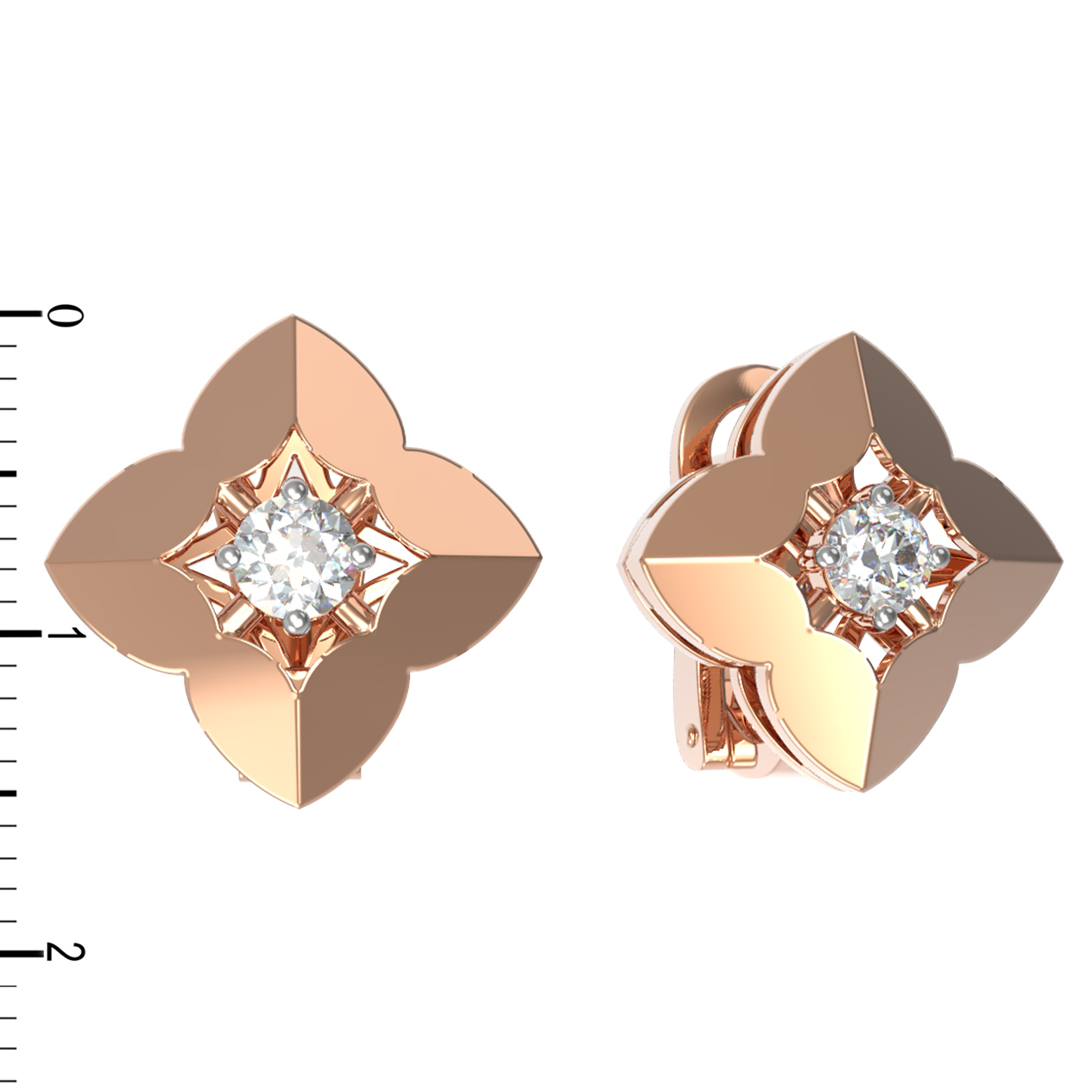 В центре каждого цветка расположена роскошная вставка — бриллиант круглой огранки. Белый цвет вставок создает выразительный контраст с красным металлом, заставляя свет играть и переливаться при каждом движении. В изделии использовано 2 бриллианта, что придает украшению сдержанную, но заметную роскошь. Благодаря продуманному дизайну, серьги будут одинаково гармонично смотреться как в женском, так и в мужском стиле, дополняя строгие или вечерние ансамбли.