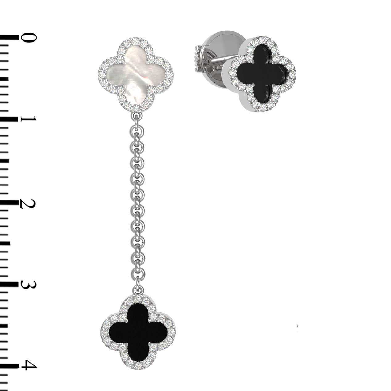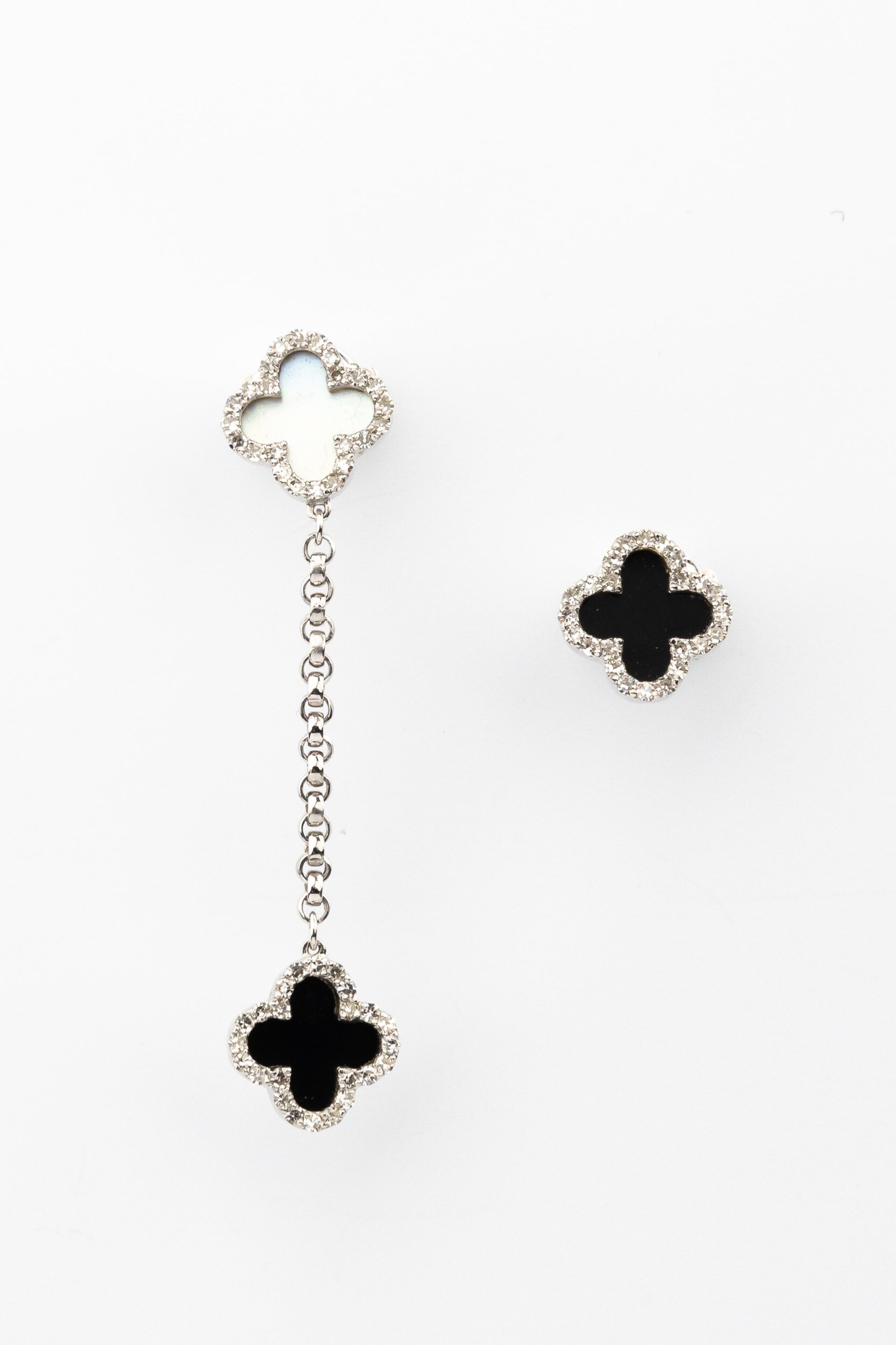 Серьги из белого золота c бриллиантами, ониксом и перламутром