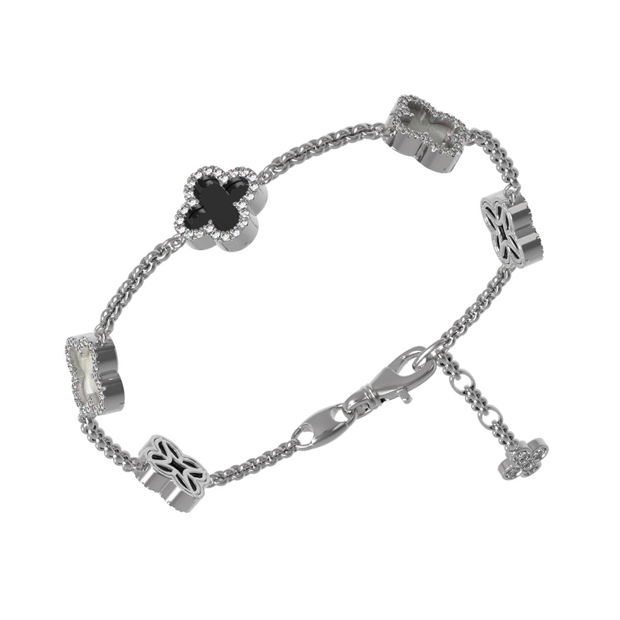 Браслет из белого золота c бриллиантами, ониксом и перламутром