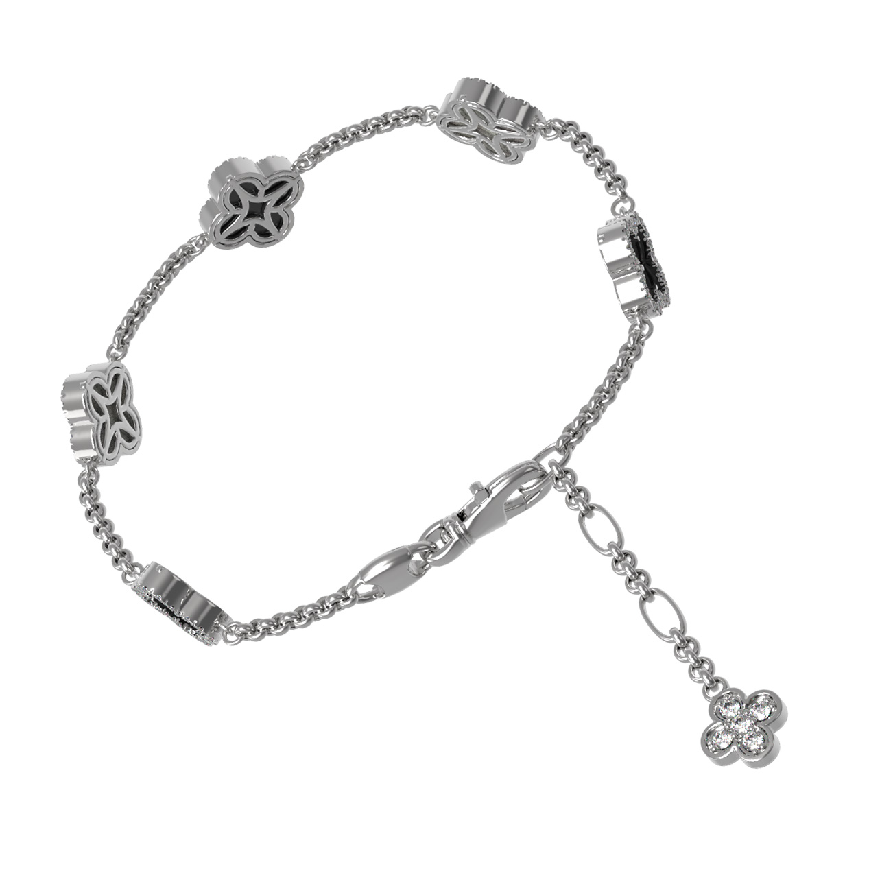 Изысканный браслет из белого золота 585 пробы — это воплощение утонченного стиля и ювелирного мастерства. Изделие входит в коллекцию De Luxe — Цветок клевера — Бриллианты, дизайн которой вдохновлен природной грацией и символизмом цветка клевера. Безупречное сочетание прохладного блеска благородного металла с глубоким черным цветом оникса и нежным сиянием перламутра создает гармоничный контраст, который подчеркнет статус и хороший вкус своего владельца.