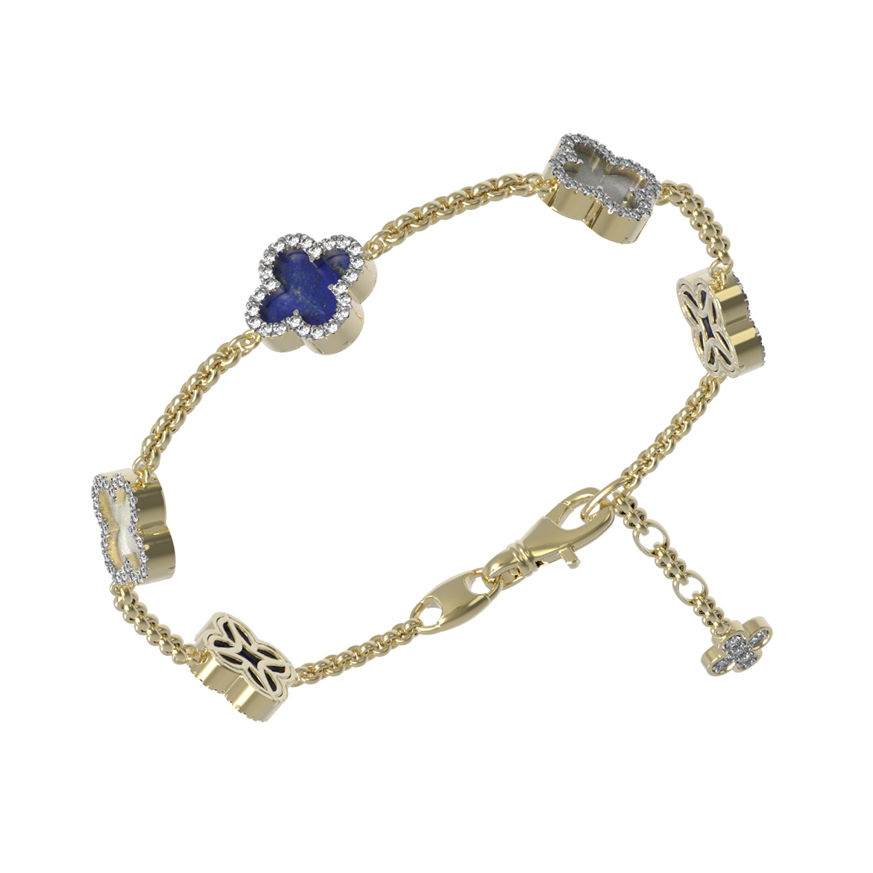 Браслет из лимонного золота c бриллиантами, лазуритом и перламутром