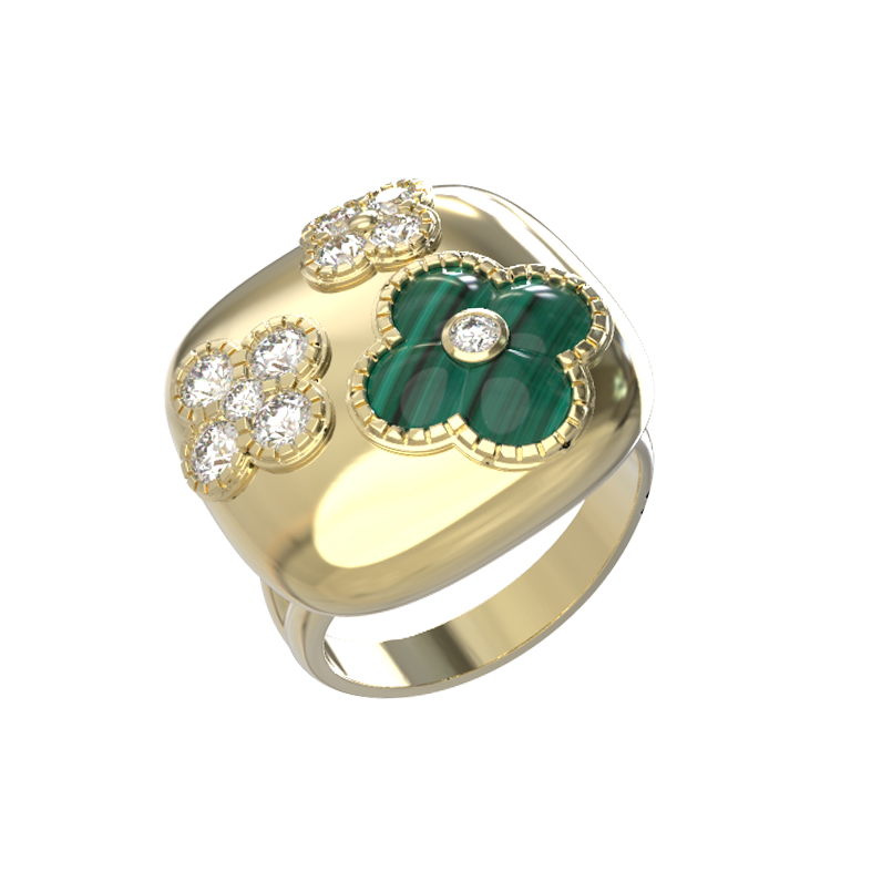 Кольцо из лимонного золота c бриллиантами и малахитом