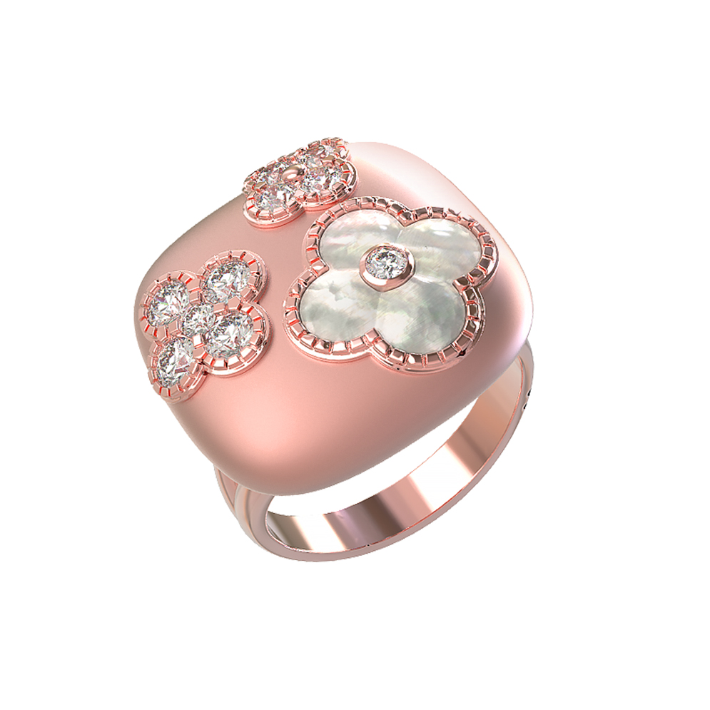 Кольцо из розового золота 585 пробы c бриллиантами и перламутром