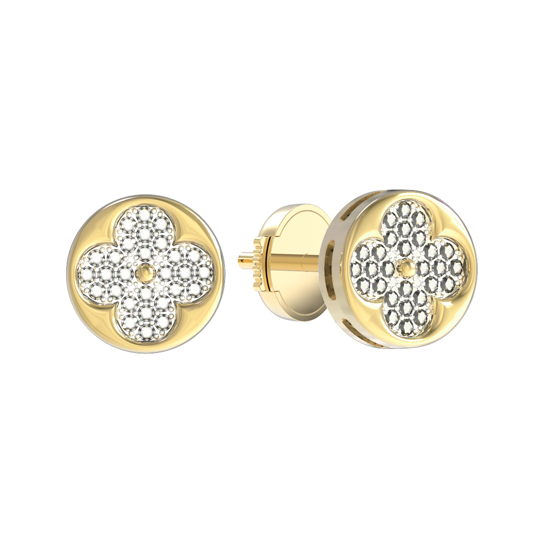 Центральную часть композиции украшают 56 бриллиантов круглой огранки. Белый цвет вставок эффектно контрастирует с насыщенным цветом лимонного металла, создавая притягательную игру света при каждом движении. Благодаря выверенным пропорциям и качественному исполнению, эти серьги гармонично дополнят как повседневный, так и вечерний гардероб.