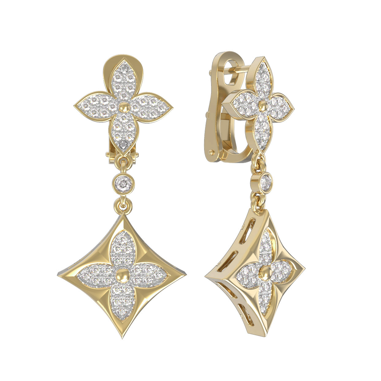 Эффектные серьги из лимонного золота 585 пробы — это воплощение изысканности и утонченного вкуса, созданное для тех, кто ценит ювелирное искусство. Дизайн модели выполнен в форме изящного клевера, что придает украшению особое очарование и символизирует гармонию. Благородный оттенок лимонного золота идеально сочетается с холодным блеском драгоценных камней, создавая роскошную игру света, притягивающую восхищенные взгляды.