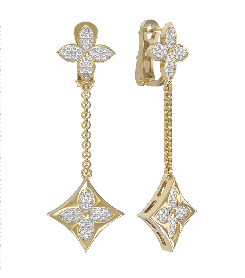 Серьги из лимонного золота 585 пробы из коллекции De Luxe — Амальфи — Бриллианты — это воплощение изысканности и утонченного стиля. Эти ювелирные украшения отличаются сложным дизайнерским решением: основой композиции стала узнаваемая форма клевера, которая придает образу нотки аристократичности. Лимонный оттенок золота гармонично сочетается с холодным блеском драгоценных камней, создавая притягательный контраст.