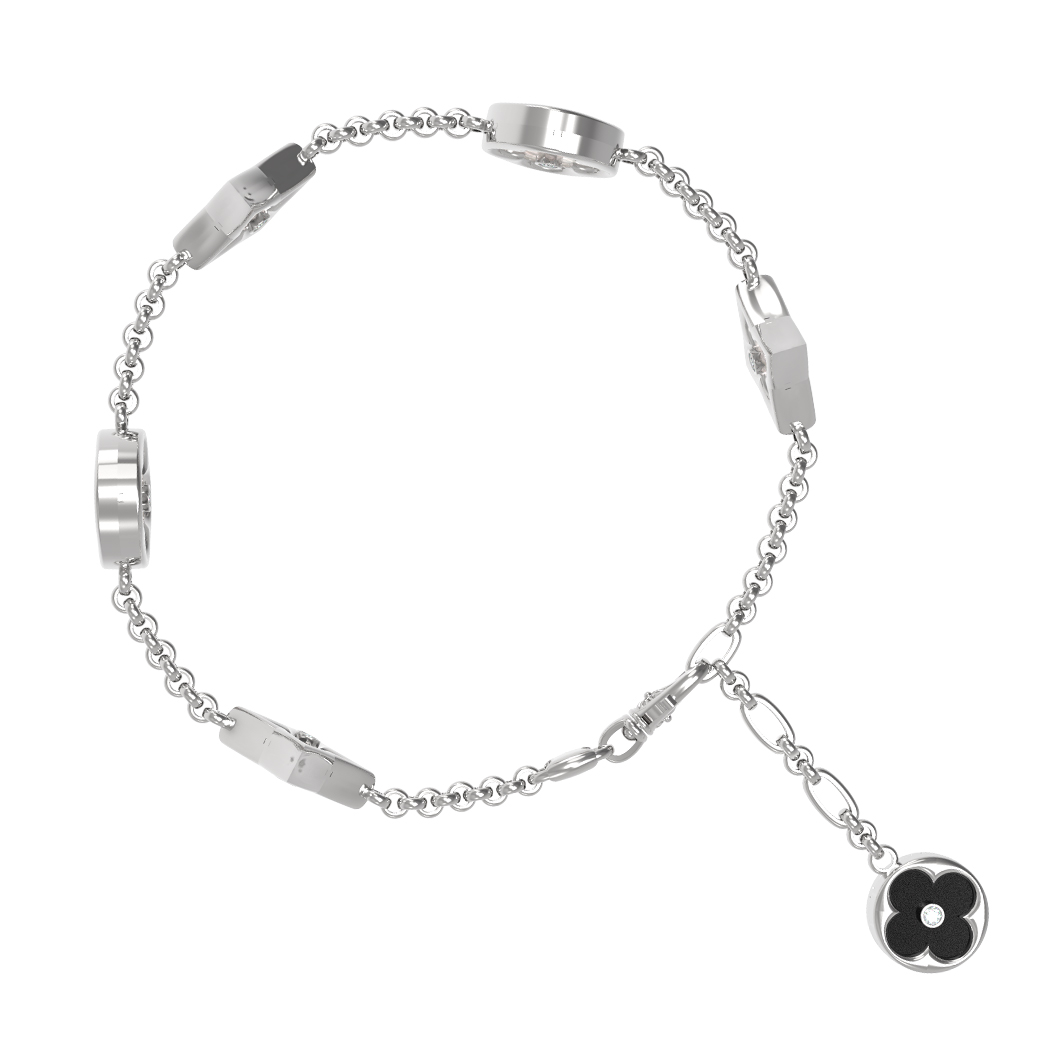 Браслет из белого золота c бриллиантами, ониксом и перламутром