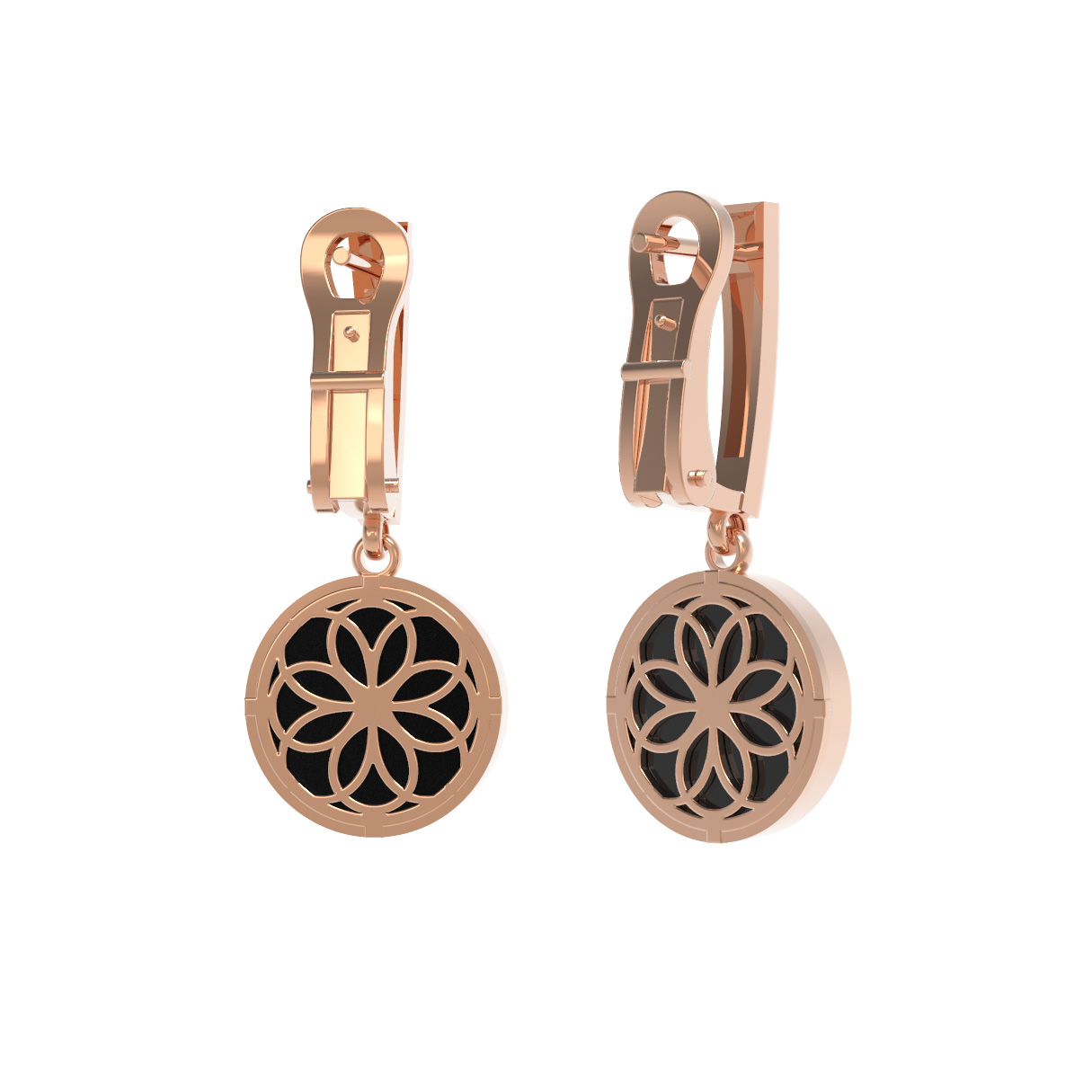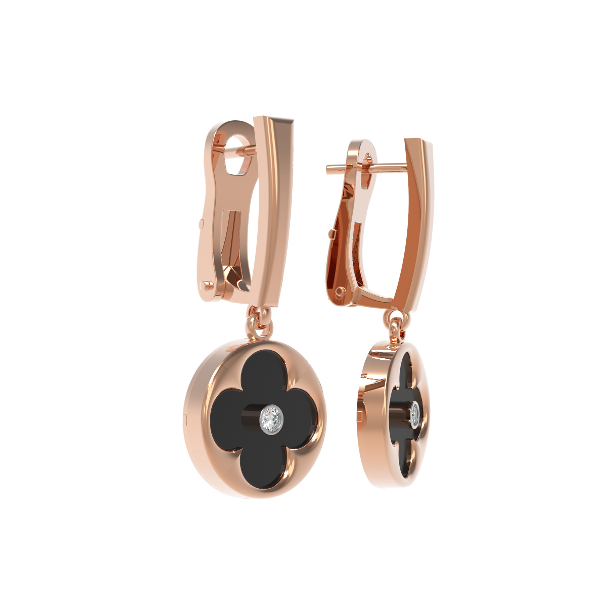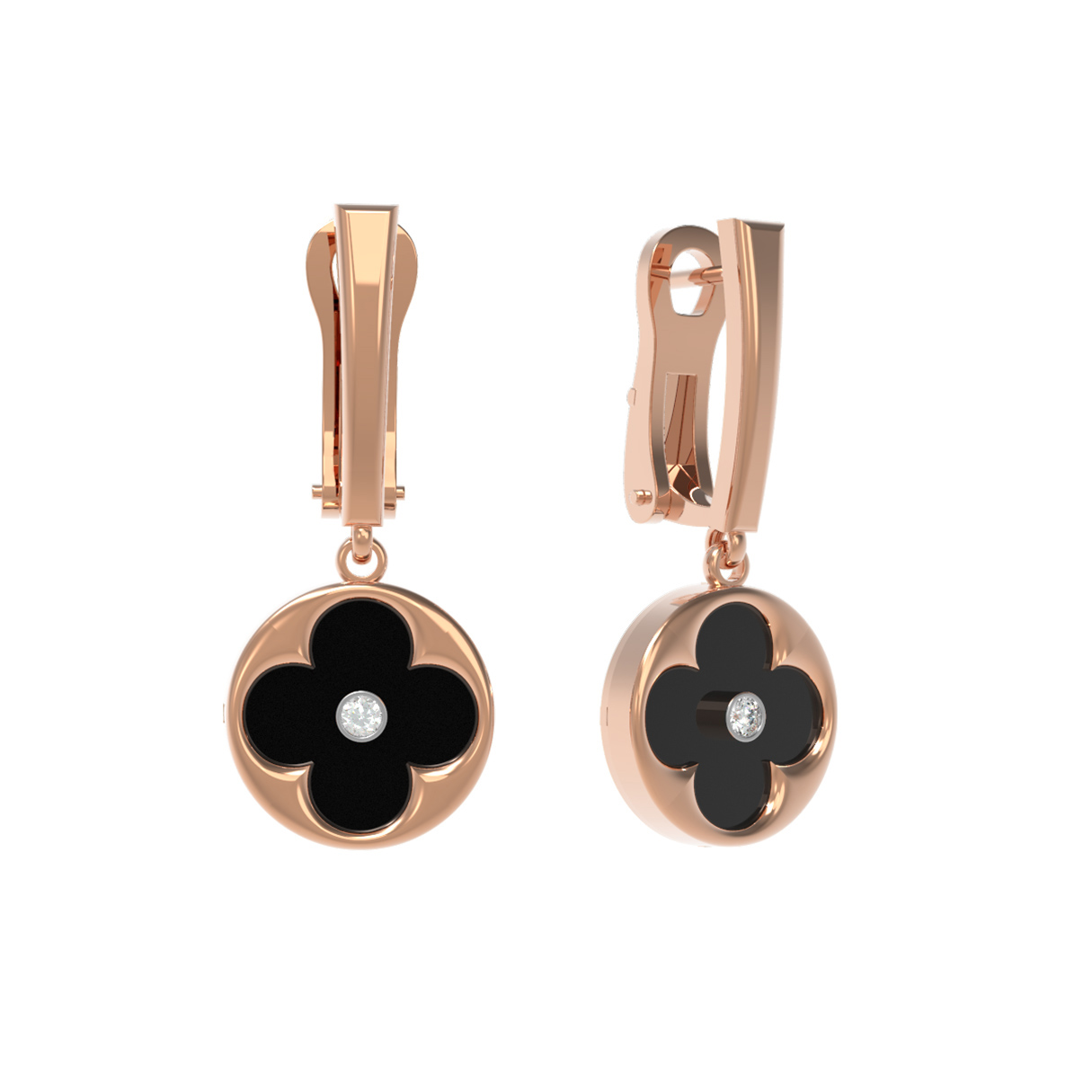 Данная модель продумана до мелочей: надежная конструкция обеспечивает комфорт при повседневном ношении, а эстетика украшения позволяет использовать его как самостоятельный аксессуар или в сочетании с другими изделиями. Эти серьги из красного золота с бриллиантами и ониксом — прекрасный выбор для ценителей ювелирных изделий, которые гармонично вписываются в любые комплекты, подчеркивая статус и индивидуальность владельца. Добавьте в свою коллекцию аксессуар, который никогда не выйдет из моды.