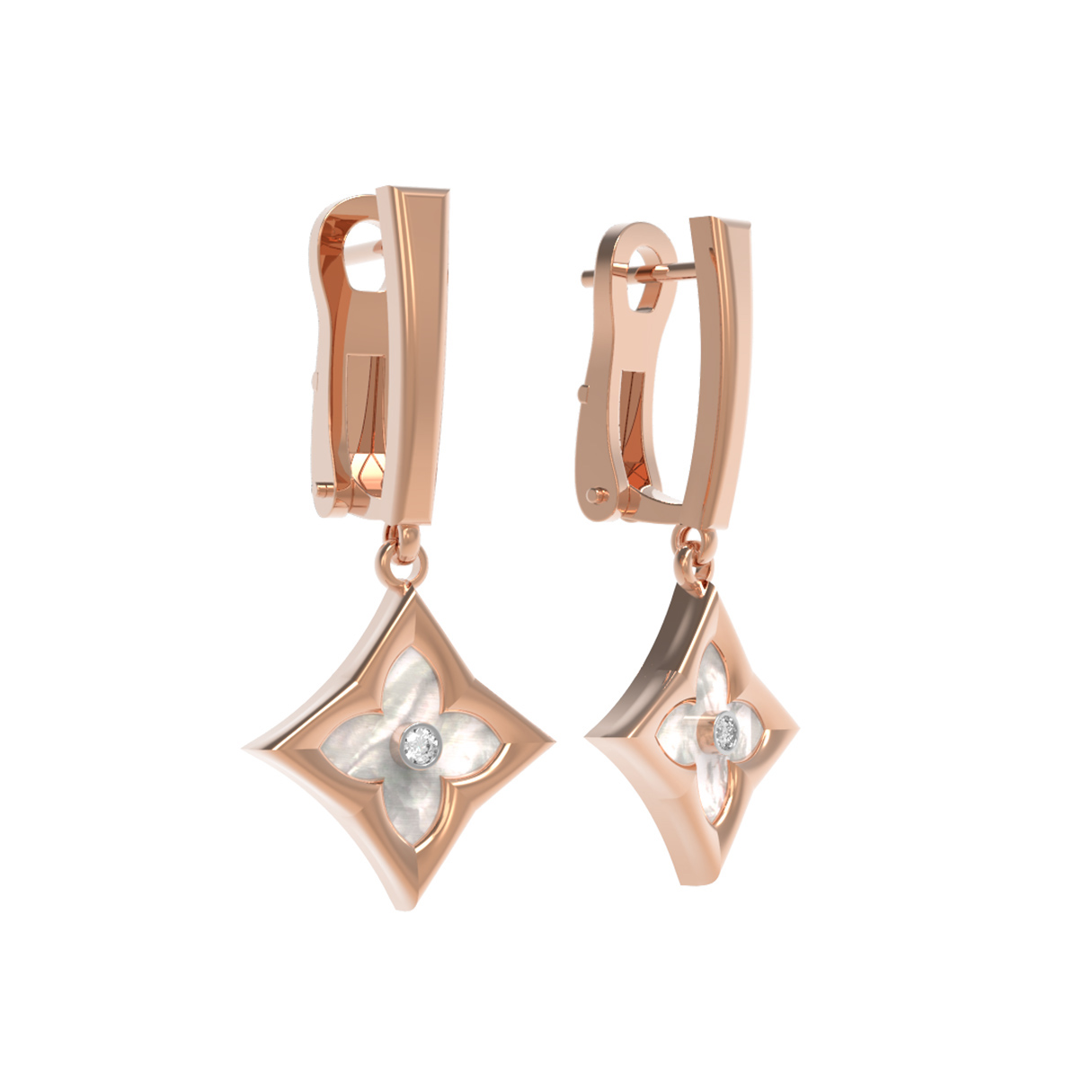 Серьги из красного золота 585 пробы c бриллиантами и перламутром