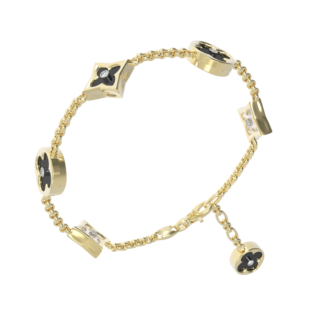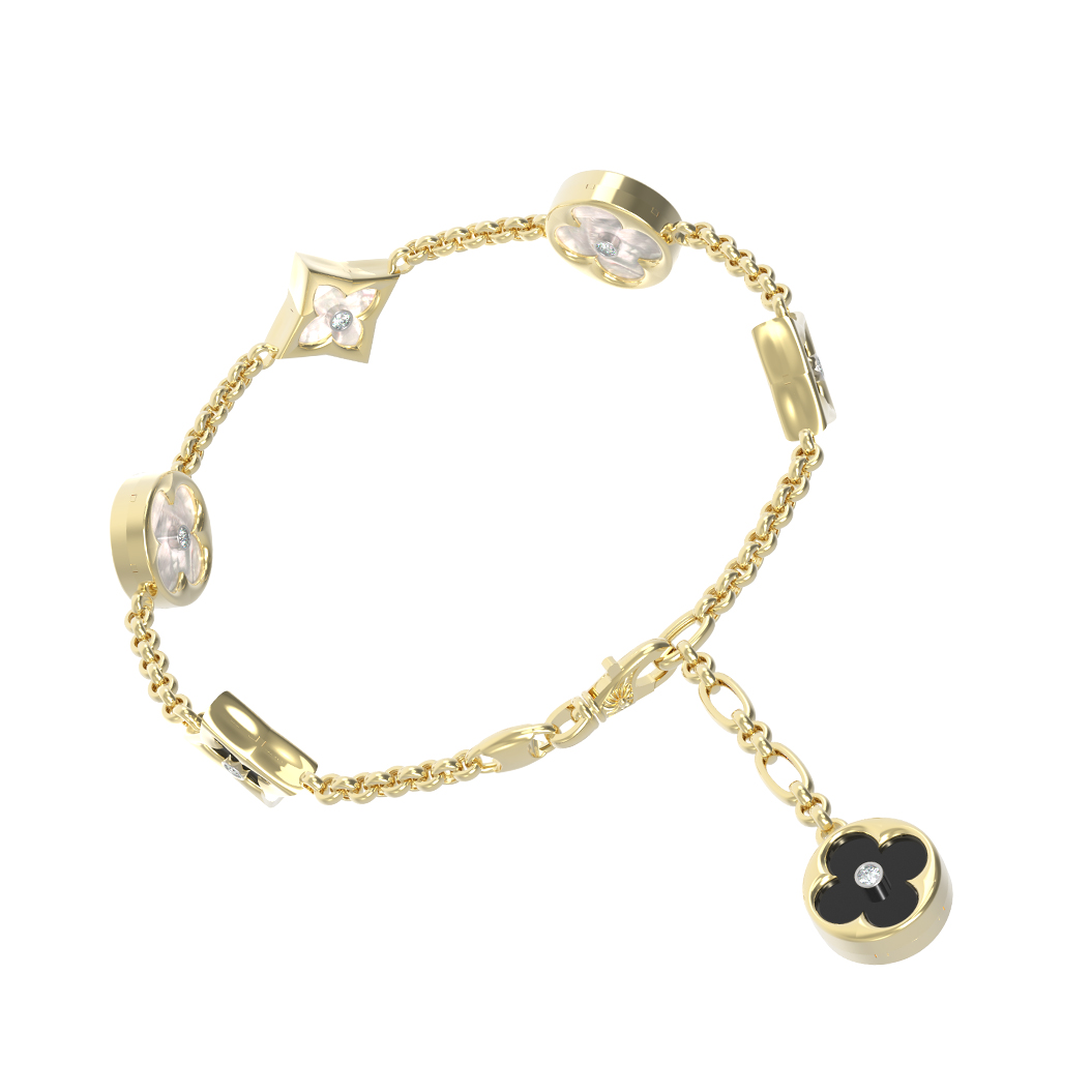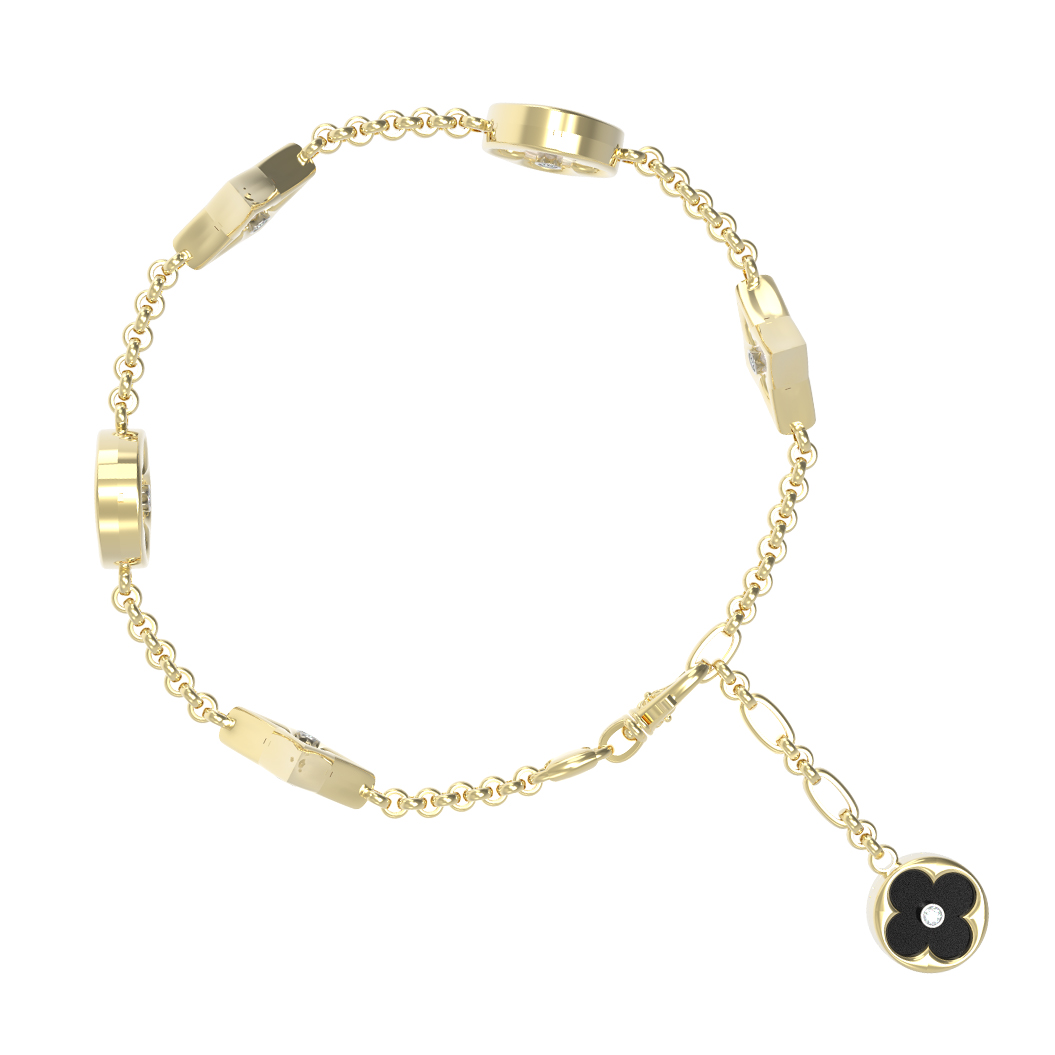 Браслет из лимонного золота c бриллиантами, ониксом и перламутром