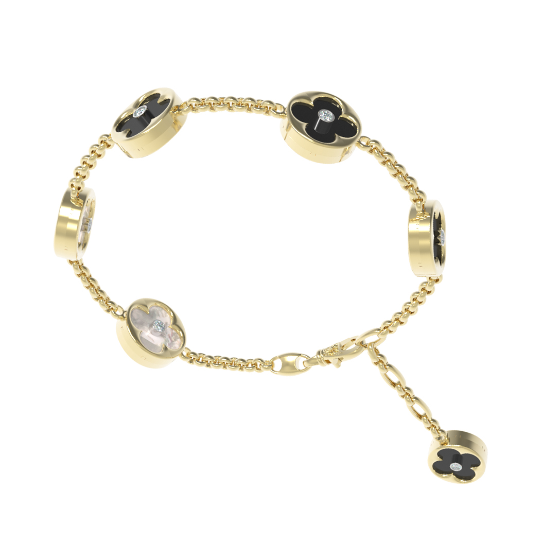 Браслет из лимонного золота c бриллиантами, ониксом и перламутром