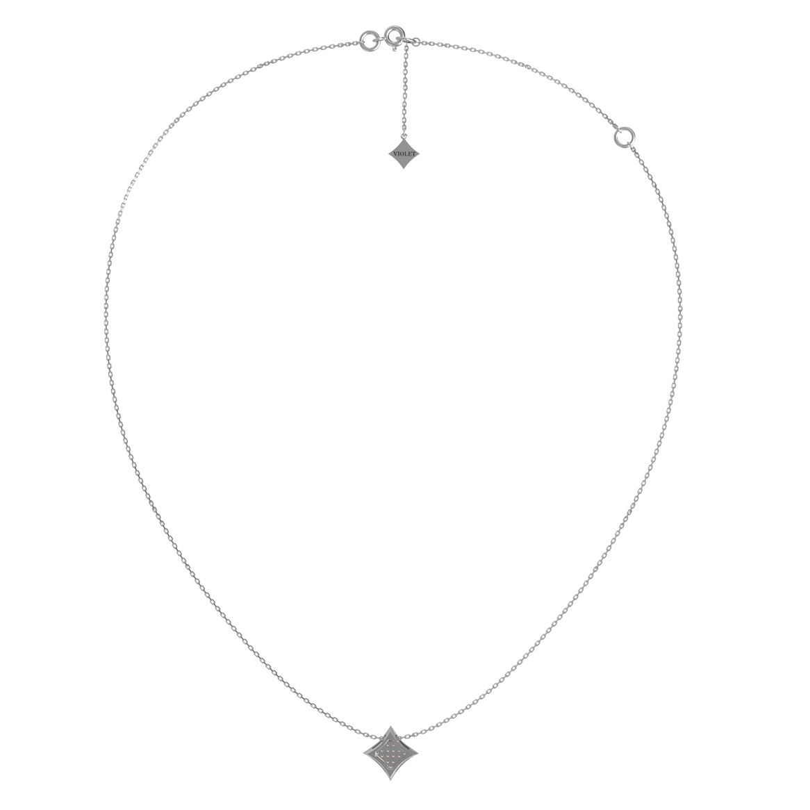 Украшение дополнено 20 бриллиантами круглой огранки, которые притягивают взгляд своим холодным белым цветом и чистотой. Мелкие камни гармонично вписаны в общую композицию, превращая колье в акцентный аксессуар для повседневного или вечернего выхода. Универсальный стиль изделия позволяет носить его как женщинам, так и мужчинам, подчеркивая индивидуальность и вкус своего обладателя.