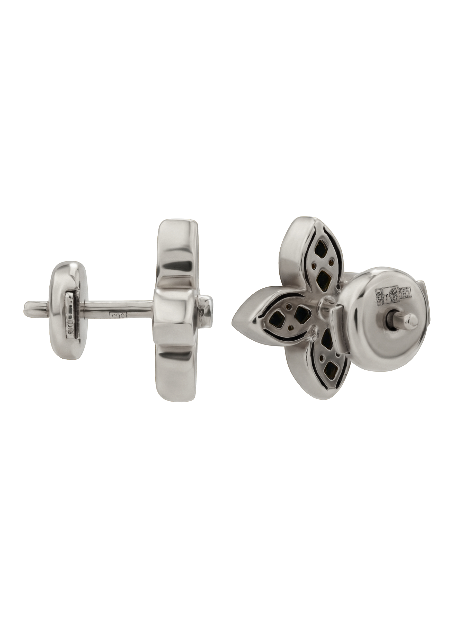 Серьги из белого золота 585 пробы из De Luxe — Амальфи — Бриллианты представляют собой воплощение современной элегантности. Ювелирное изделие выполнено в популярном дизайне клевер, который сочетает в себе классические формы и актуальную эстетику. Основа из благородного белого золота подчеркивает холодный блеск материалов и создает гармоничную оправу для вставок.