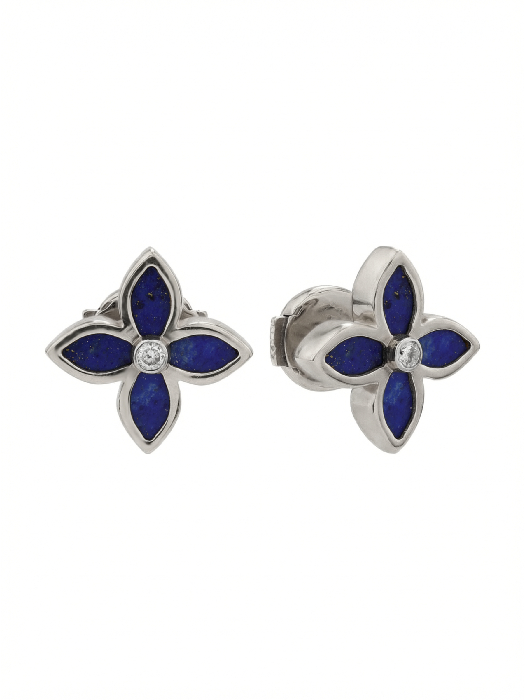 Серьги из белого золота c бриллиантами и лазуритом