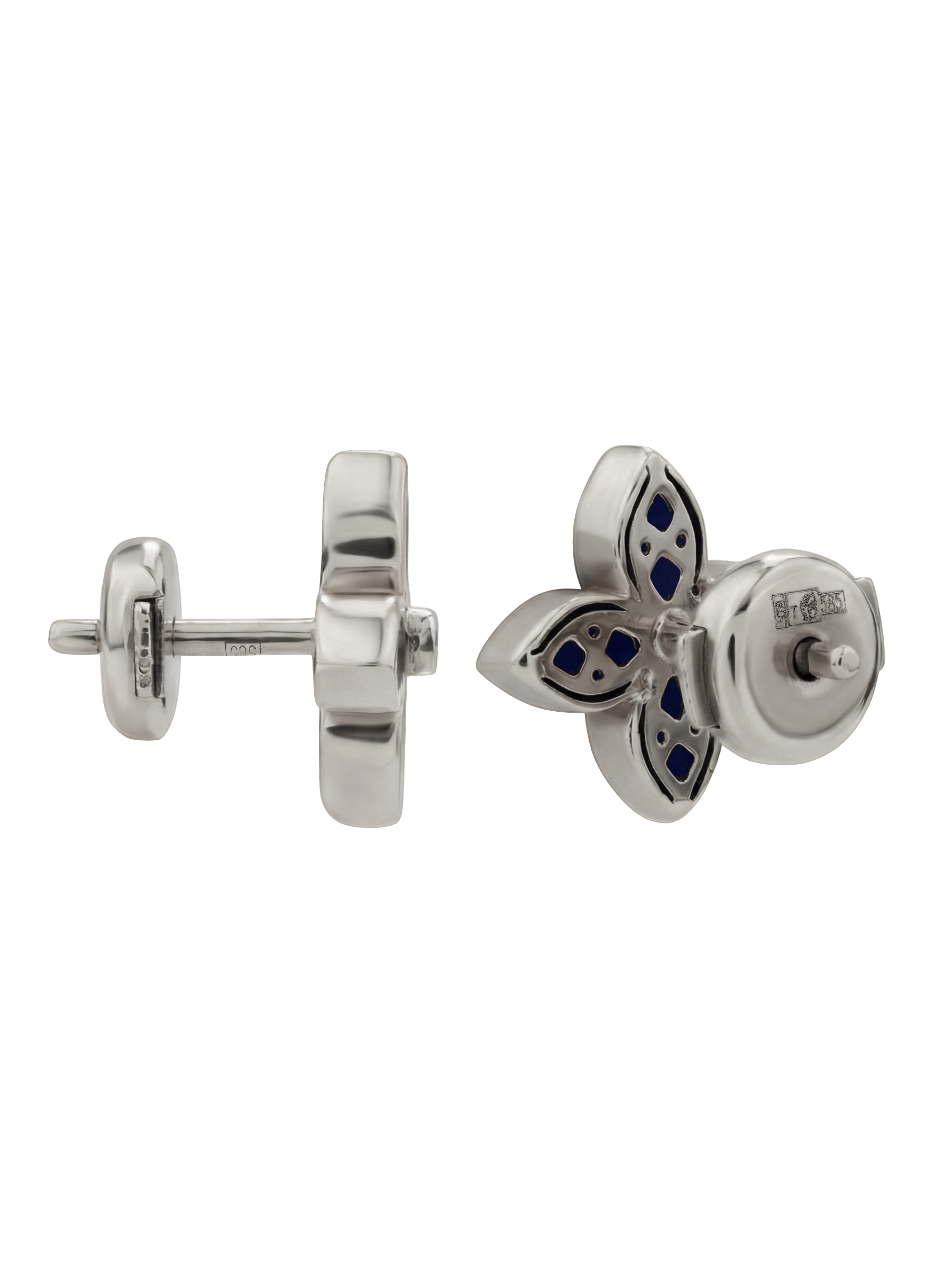 Серьги из белого золота 585 пробы из коллекции De Luxe — Амальфи — Бриллианты станут безупречным акцентом вашего образа. Это ювелирное изделие, выполненное в изысканном дизайне клевер, сочетает в себе классическую роскошь и современные ювелирные тренды. Глубокий, насыщенный синий цвет вставок лазурита эффектно контрастирует с холодным блеском металла, создавая выразительный визуальный акцент.