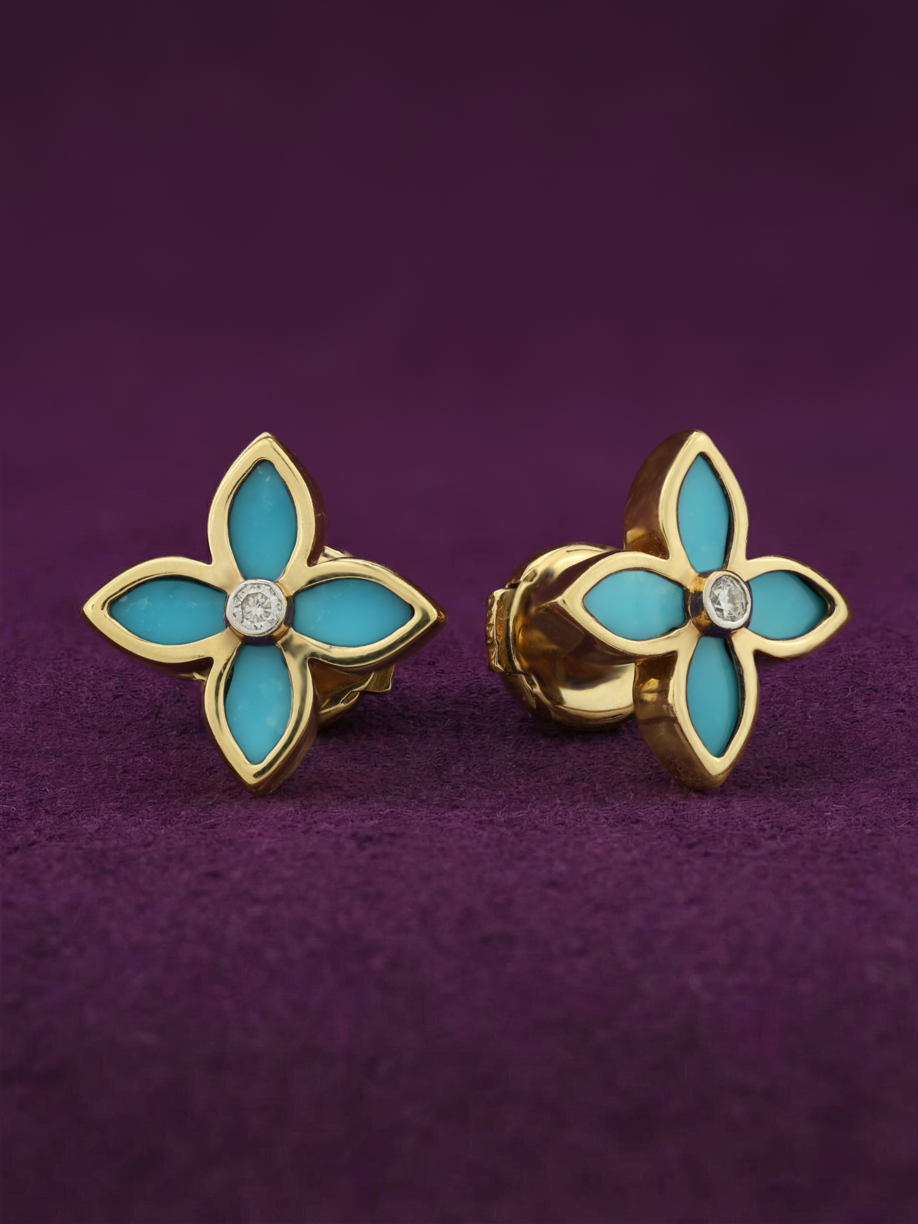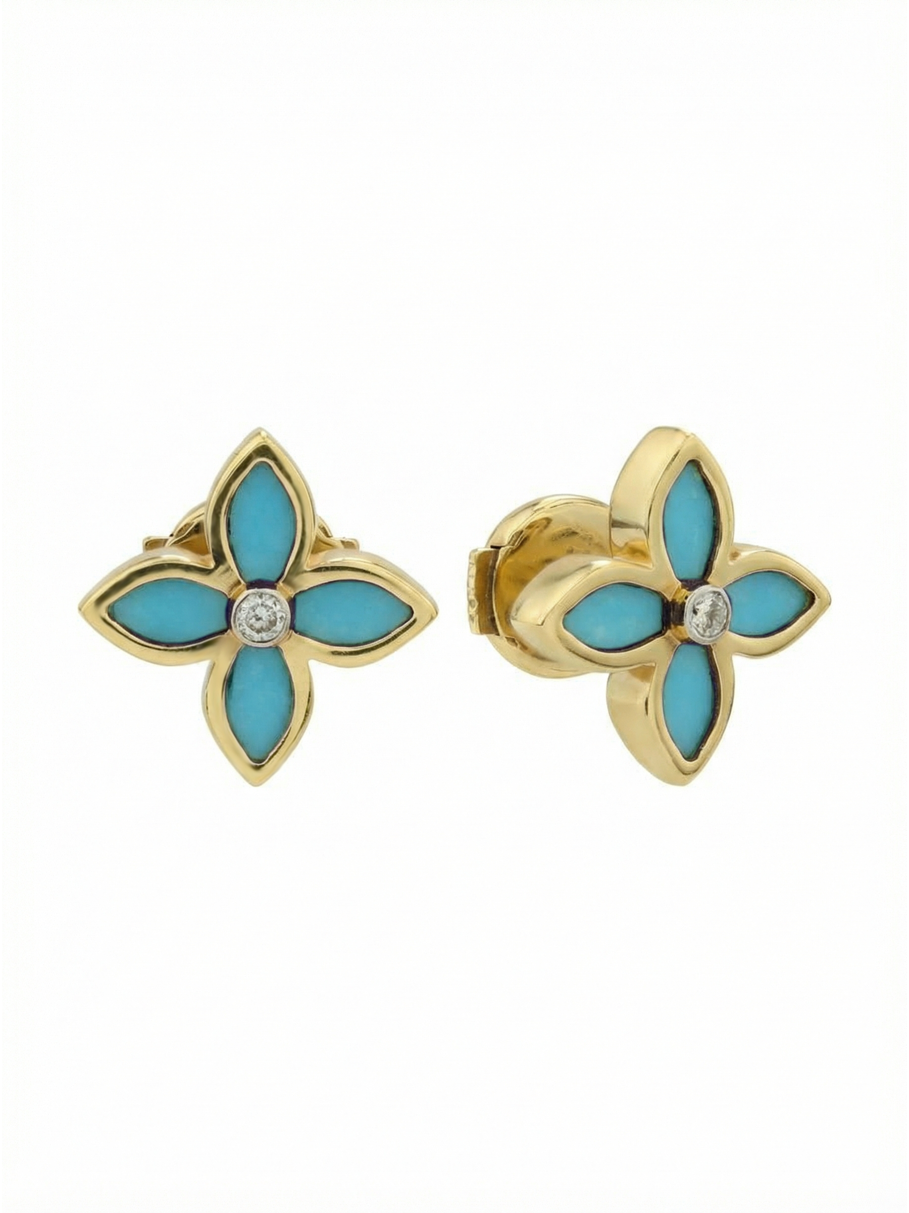 Центральным элементом композиции является чистый белый бриллиант круглой формы, который придает изделию роскошное мерцание. Его яркость подчеркивает нежная бирюза с ее глубоким и притягательным бирюзовым цветом, оформленная в виде стилизованного четырехлистника. Общее количество вставок в изделии составляет 4, что обеспечивает идеальный баланс и выразительность каждой детали. Качественное исполнение и продуманный дизайн делают эти серьги универсальным аксессуаром, который одинаково гармонично подходит как для женщин, так и для мужчин.