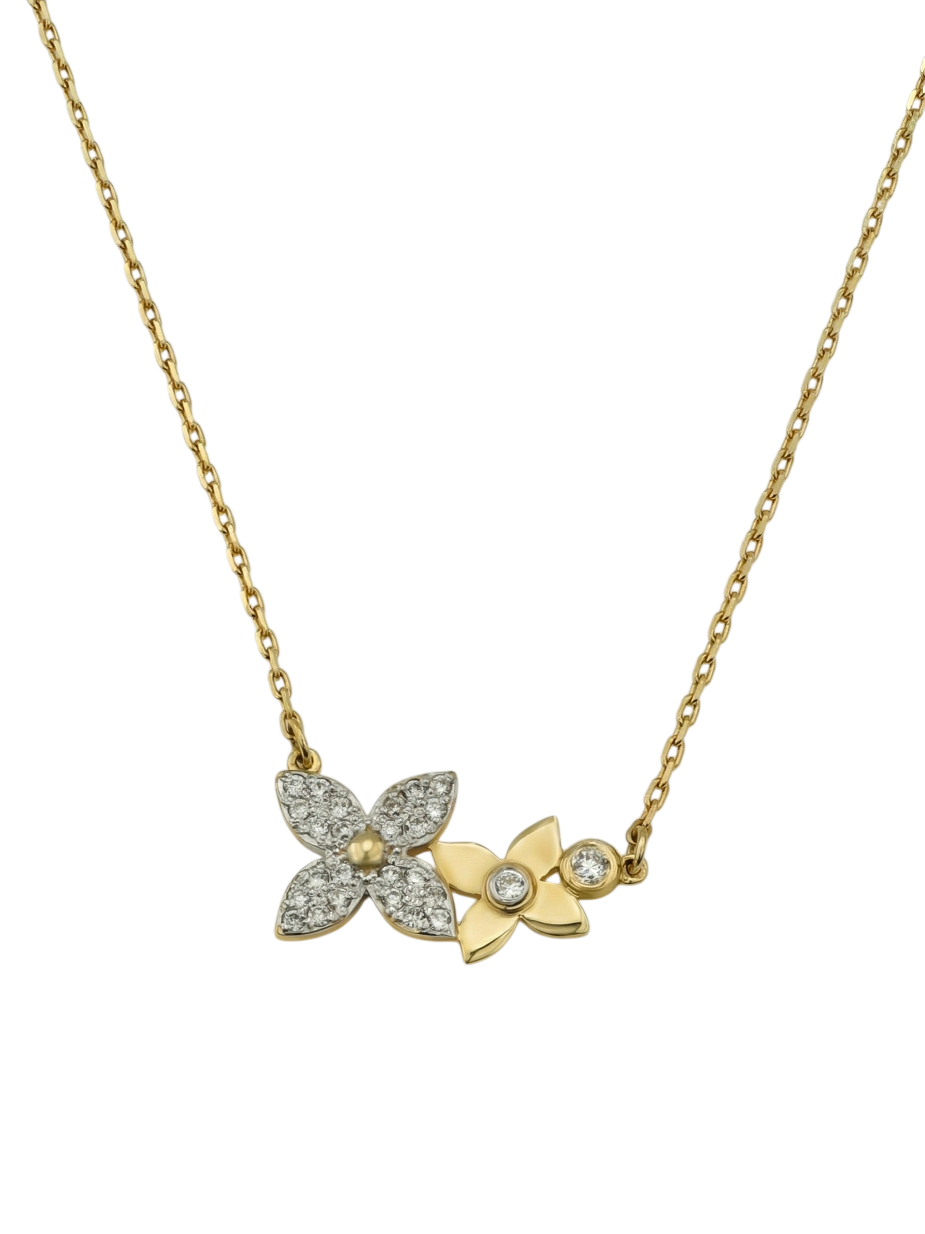 Элегантное колье из лимонного золота 585 пробы из коллекции De Luxe — Амальфи — Бриллианты станет безупречным акцентом вашего образа. Дизайн украшения вдохновлен флористическими мотивами и выполнен в форме нежных лепестков-клевера, что придает изделию утонченность и изысканный шарм. Тонкая работа ювелиров подчеркивает благородство лимонного металла, создавая гармоничное сочетание с драгоценными камнями.