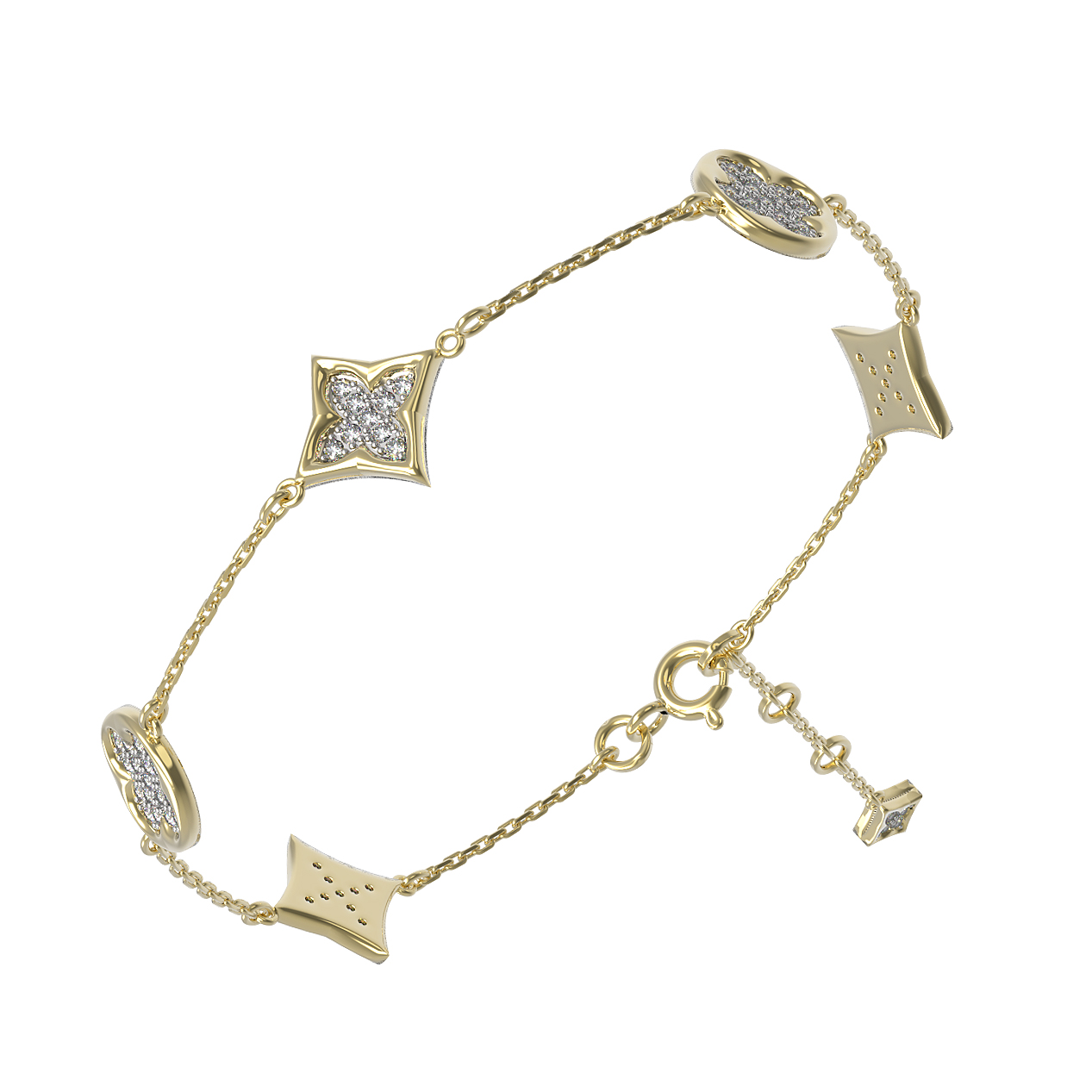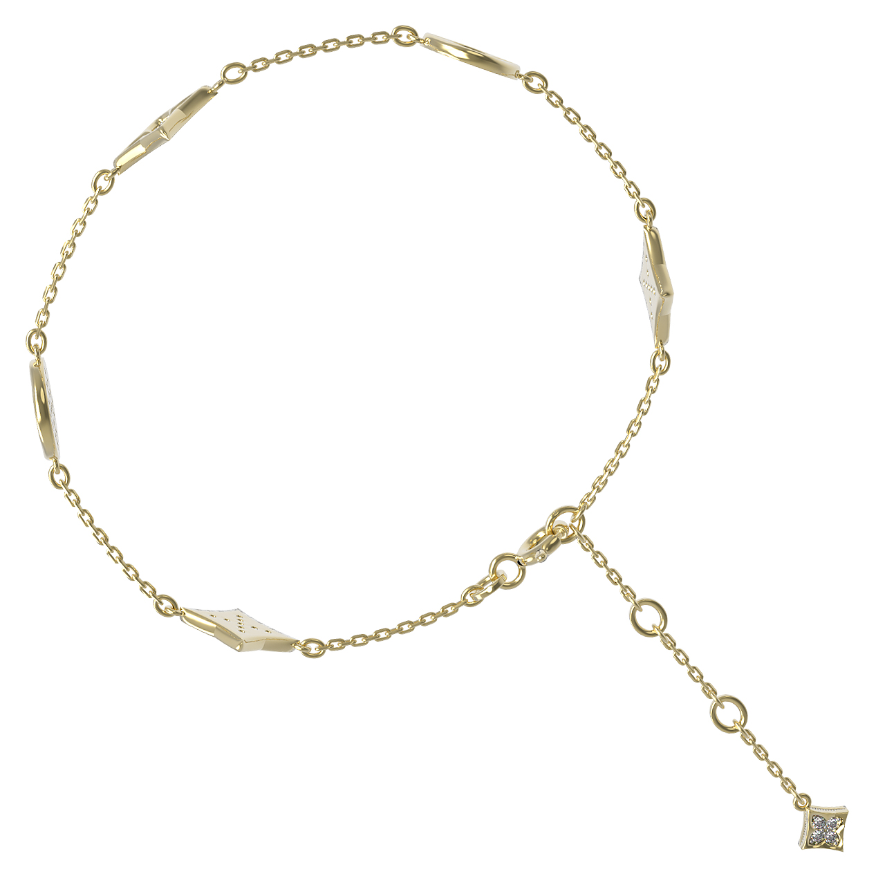 Центральным элементом композиции выступают 65 бриллиантов круглой огранки. Белый цвет вставок эффектно контрастирует с теплым тоном лимонного золота, создавая игру света при каждом вашем движении. Деликатная цепочка делает украшение невесомым, позволяя ему плавно огибать запястье. Это универсальное решение, которое подойдет как для женщин, так и для мужчин, предпочитающих лаконичные и статусные аксессуары.