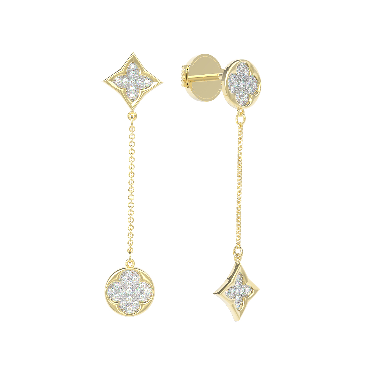 Серьги выполнены в узнаваемом дизайне «клевер», который символизирует гармонию и изящество. Особую выразительность композиции придают 52 бриллианта круглой огранки. Белые камни, искусно закрепленные в золоте, создают ослепительную игру света при каждом движении. Длинная подвесная конструкция придает украшению динамику, делая его идеальным акцентом как для вечернего, так и для статусного повседневного образа.
