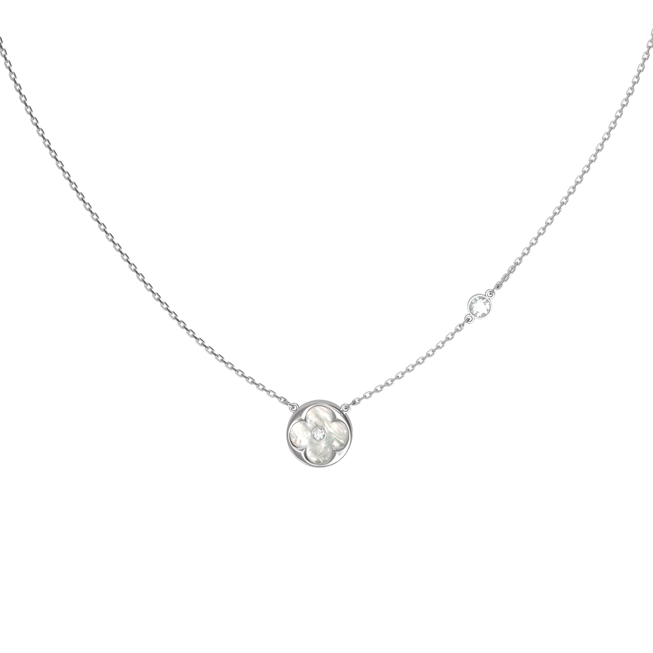 Колье из белого золота 585 пробы c бриллиантами и перламутром