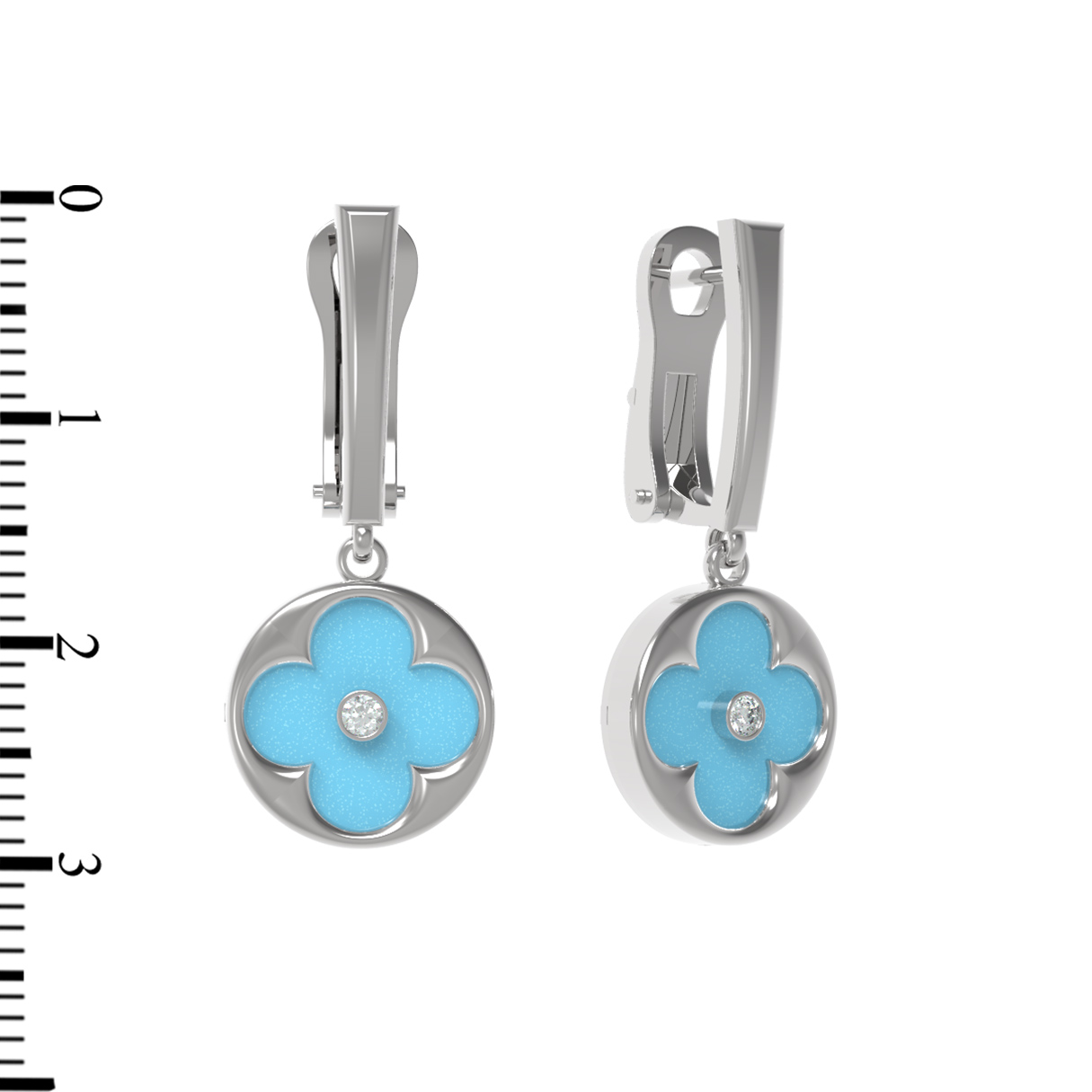 Серьги из белого золота c бриллиантами и бирюзой