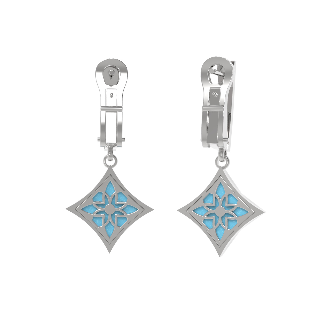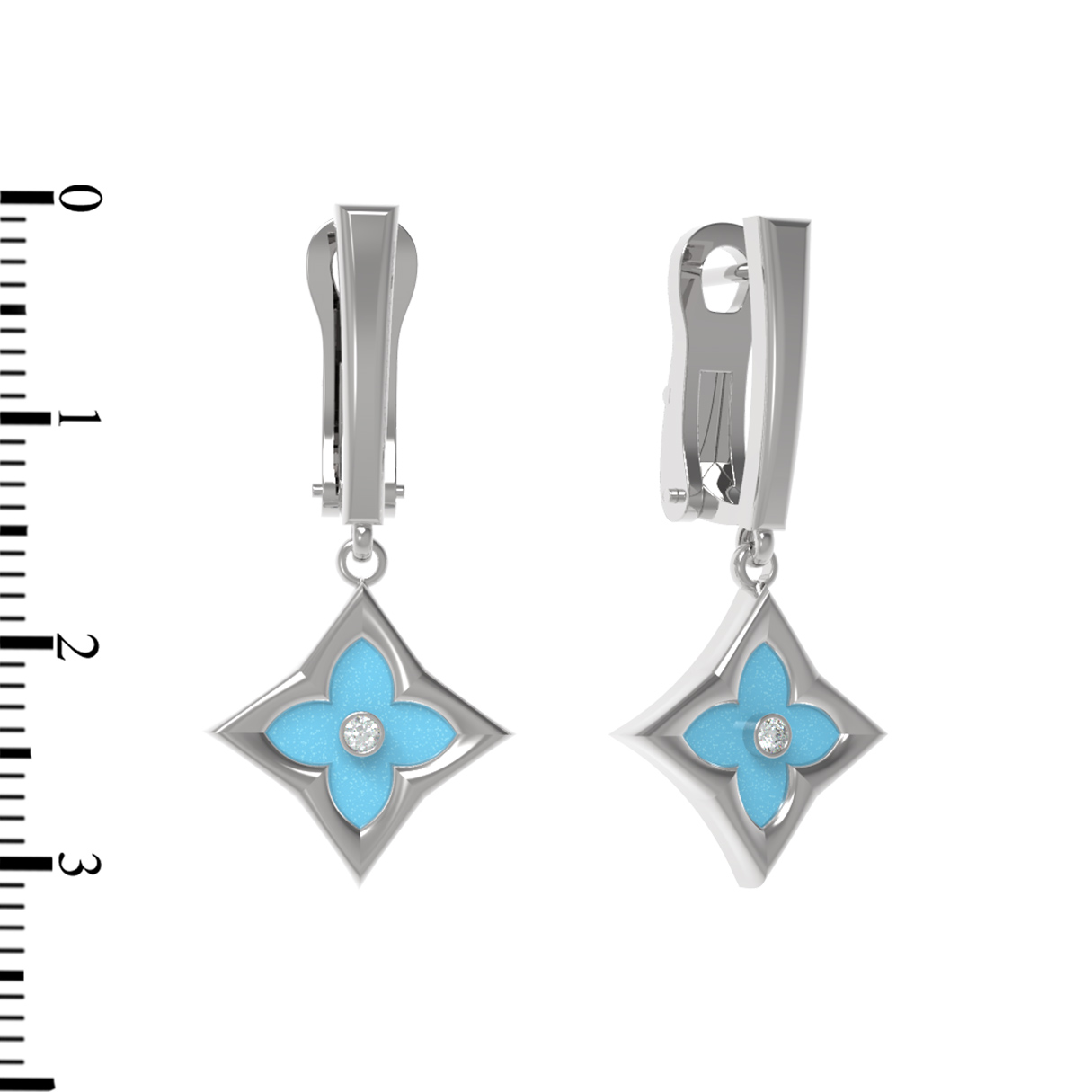Серьги из белого золота 585 пробы c бриллиантами и бирюзой