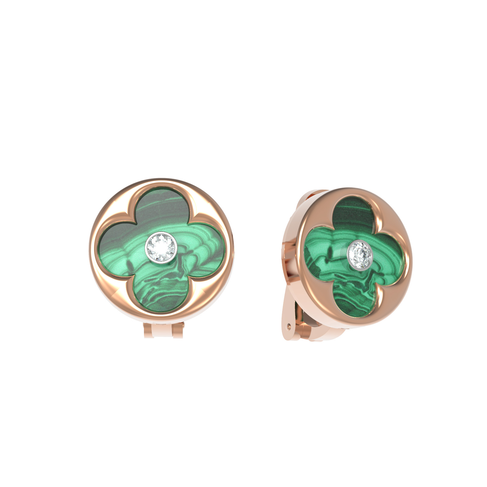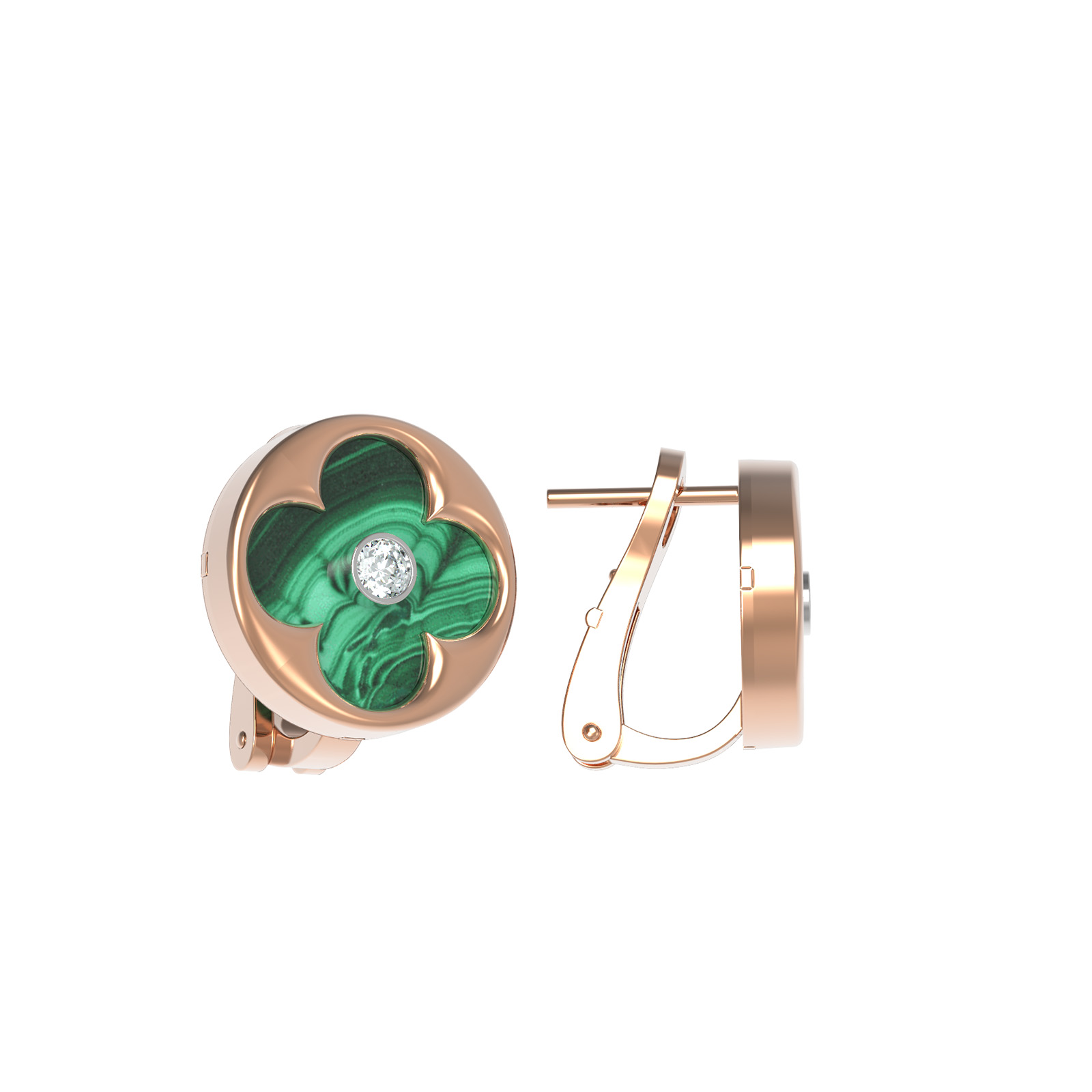 Серьги из красного золота 585 пробы c бриллиантами и малахитом
