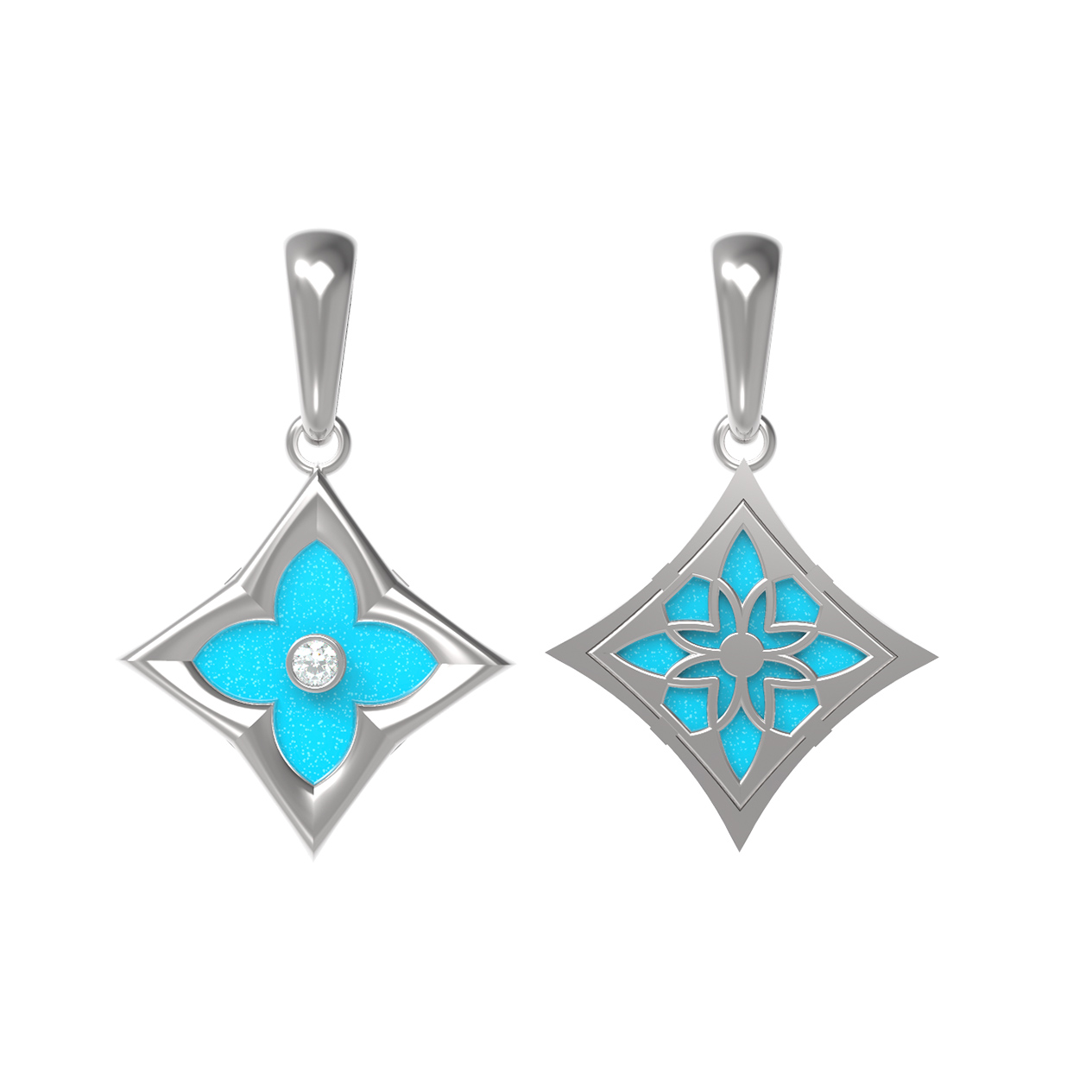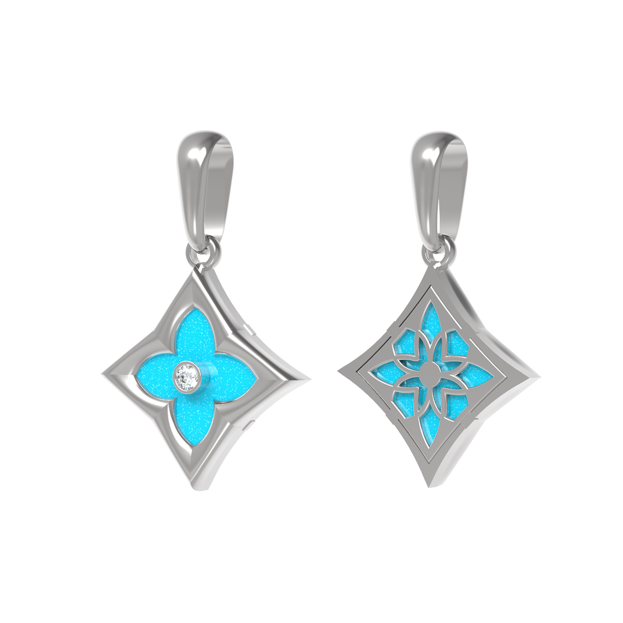 Подвеска из белого золота 585 пробы c бриллиантами и бирюзой