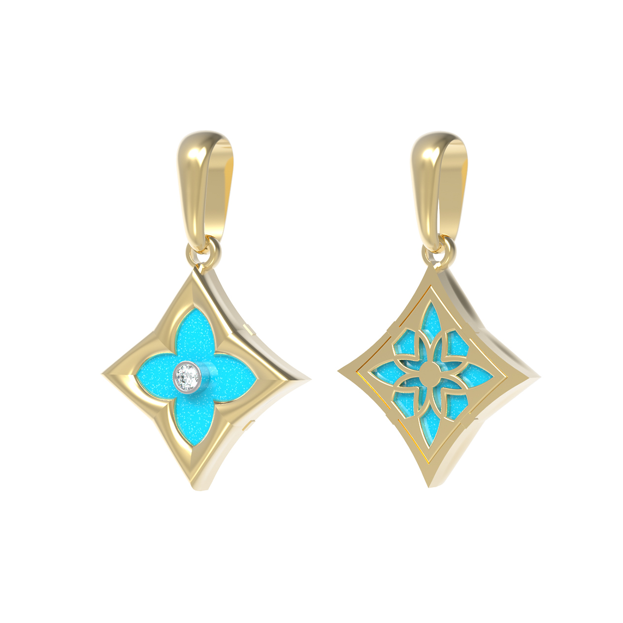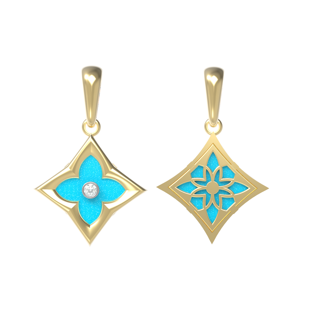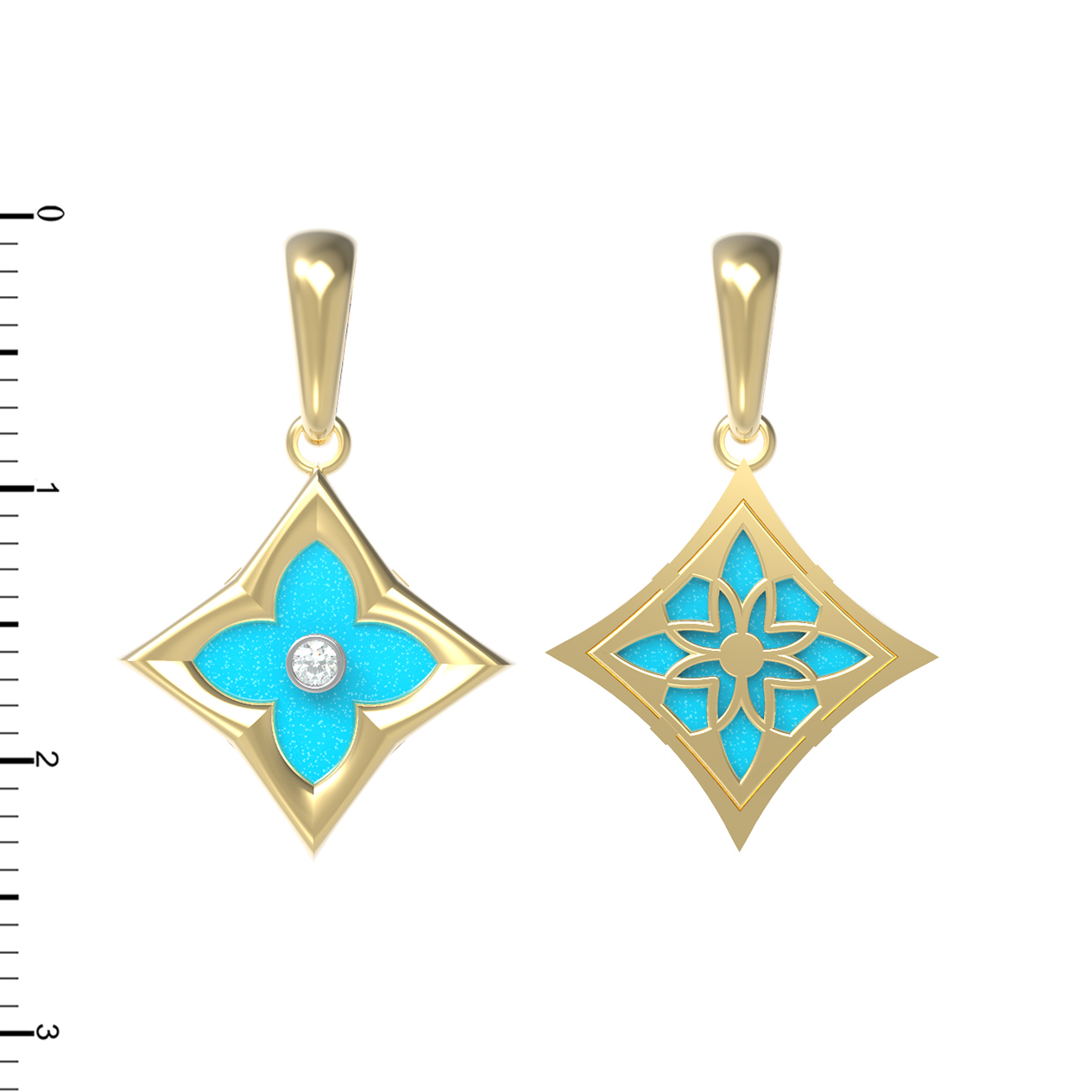 Подвеска из лимонного золота 585 пробы c бриллиантами и бирюзой