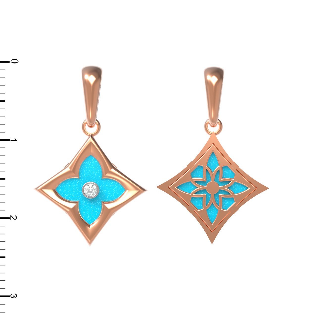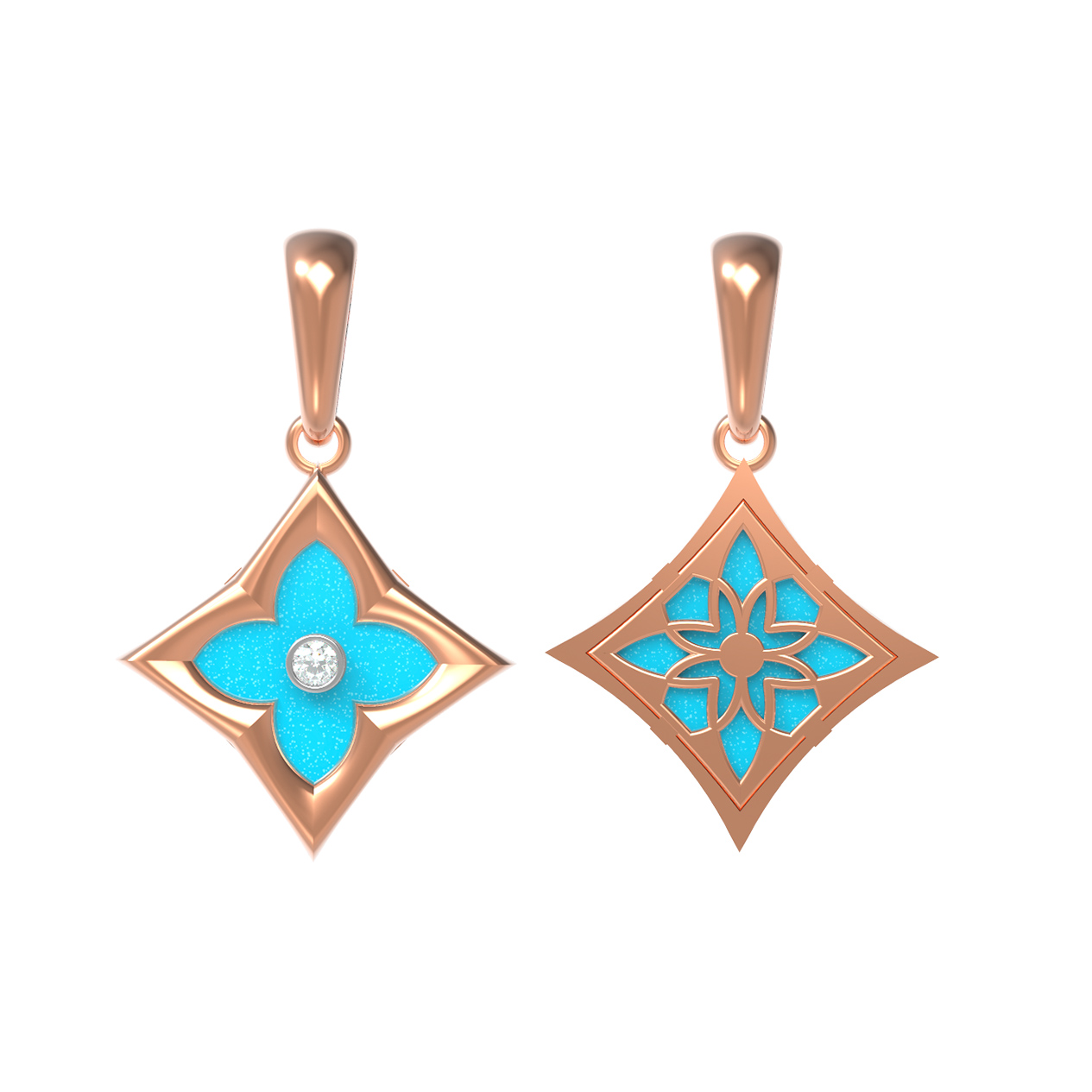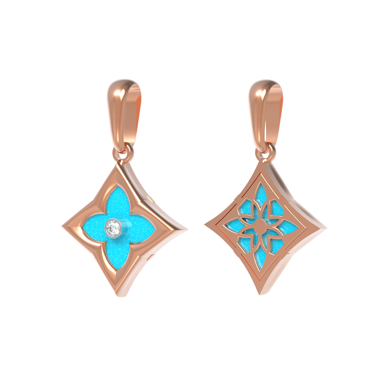 Подвеска из красного золота 585 пробы c бриллиантами и бирюзой