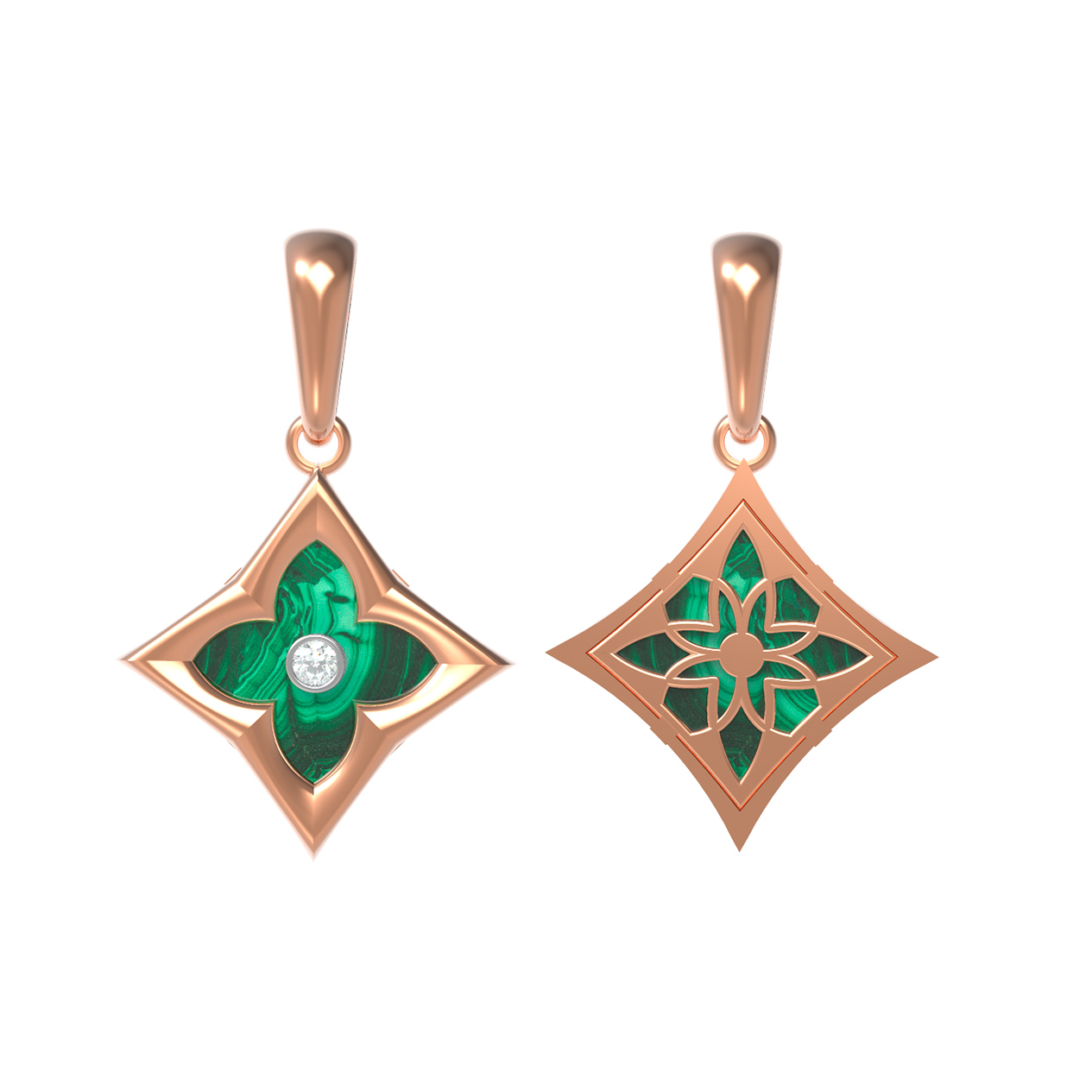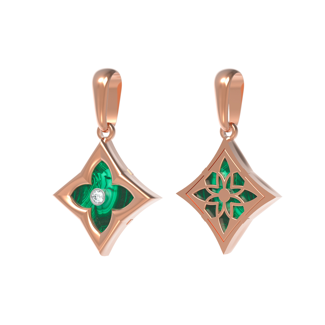 Подвеска из красного золота 585 пробы c бриллиантами и малахитом