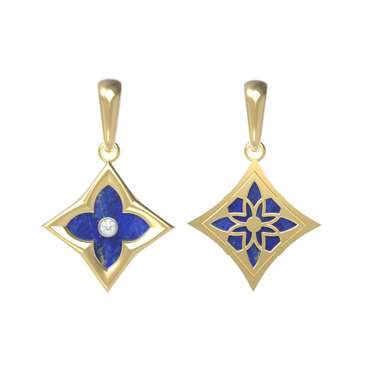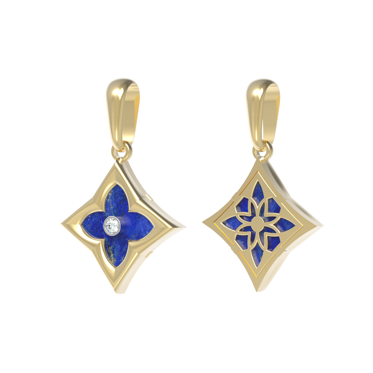 Подвеска из лимонного золота 585 пробы c бриллиантами и лазуритом