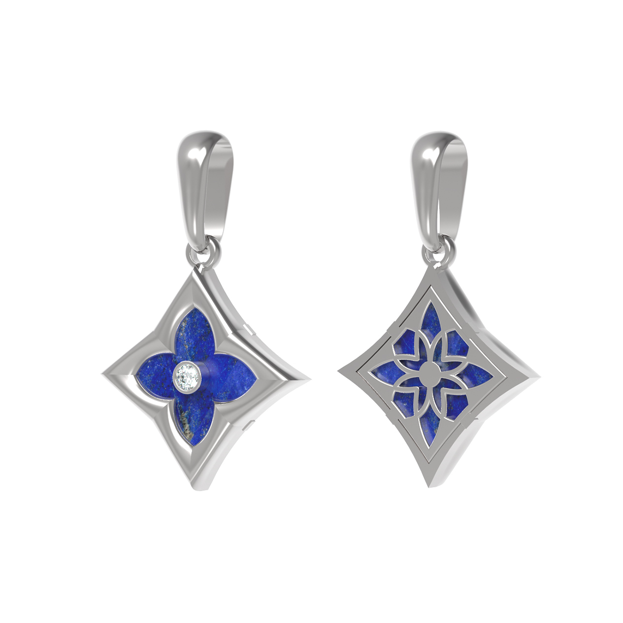 Подвеска из белого золота 585 пробы c бриллиантами и лазуритом