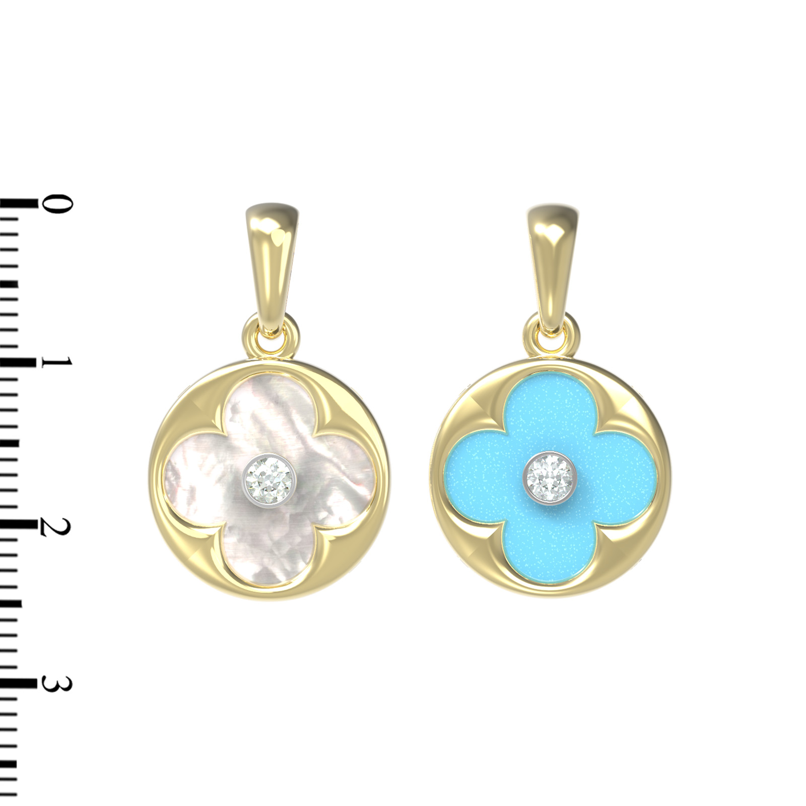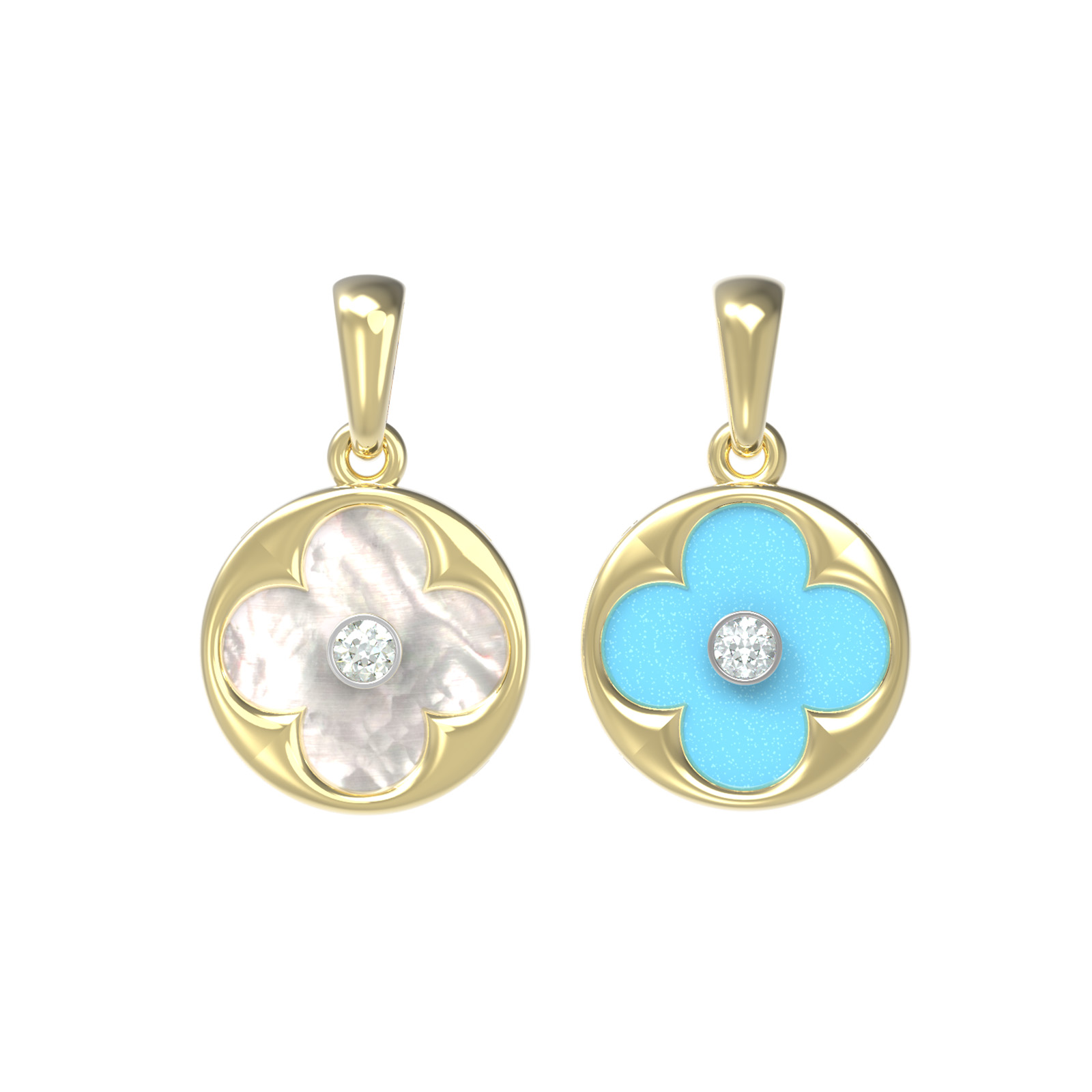 Подвеска из лимонного золота 585 пробы c бриллиантами, бирюзой и перламутром